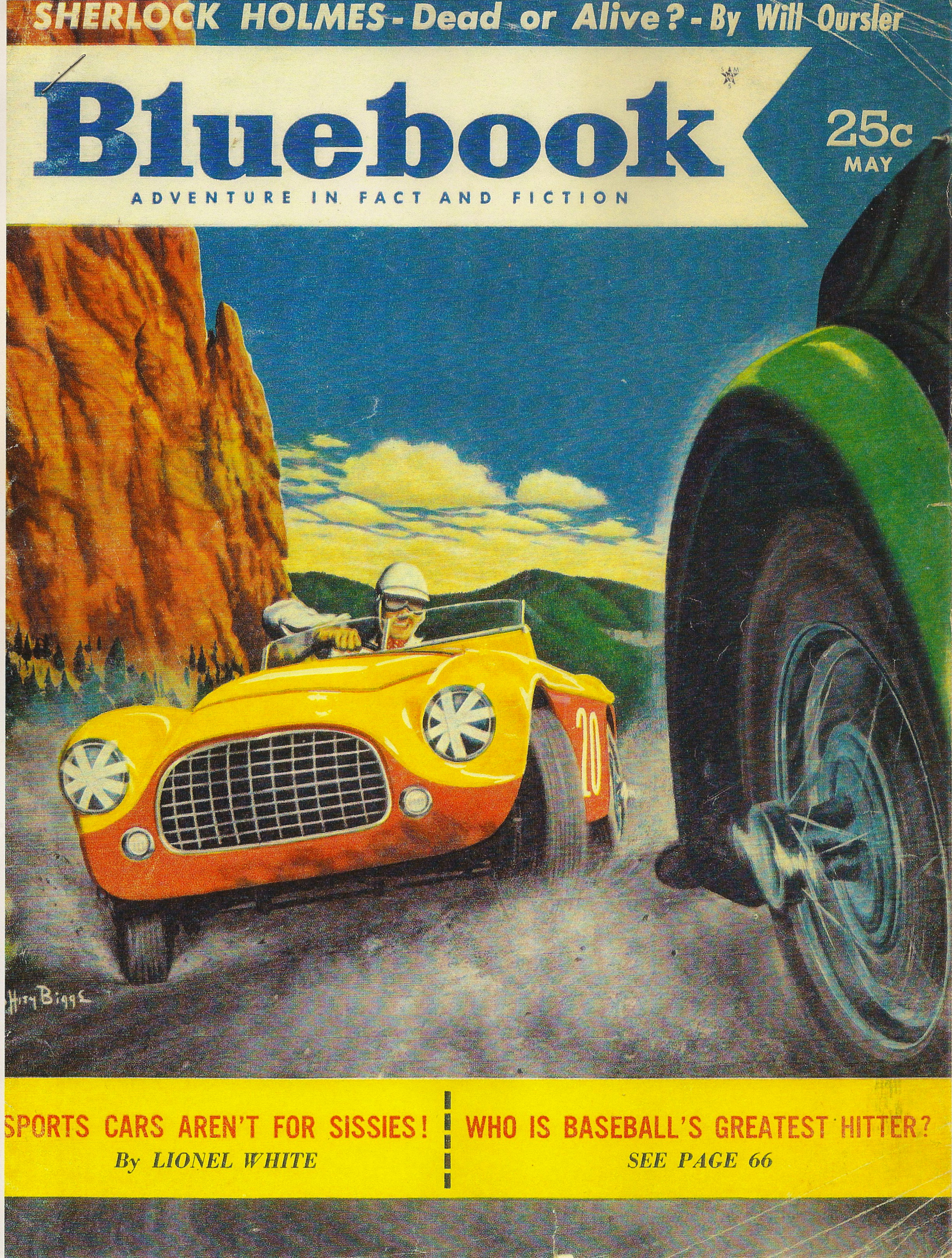 As a last example, the May 1953 issue of Bluebook magazine combined Holmes with automobiles in a most graphic manner. Along with this cover, my collection contains the story “Sherlock Holmes—Dead or Alive?,” by Will Oursler.