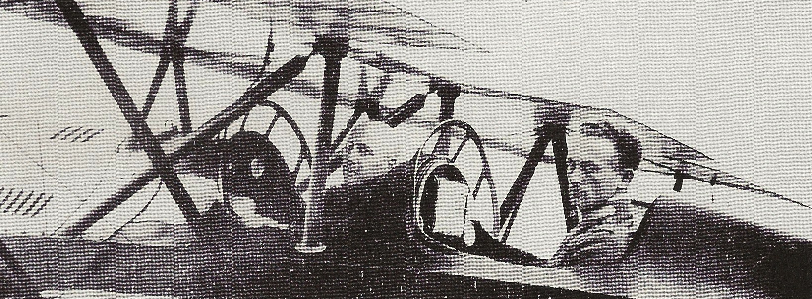 Natale Palli, right, served as d’Annunzio’s pilot in what was inherently a single-seat aeroplane. The poet/patriot sat forward on a fuel tank enlarged for the mission.