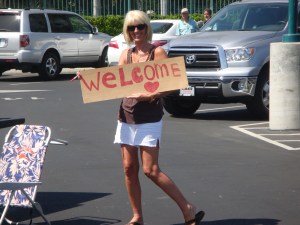 One couple we met had direct ties with the Shuttle program. In fact, the wife’s grandmother and mother had also worked at North American, later North American Rockwell, lately Boeing Defense. Her husband had driven a big rig for the company, often transporting Shuttle-related hardware around the country. They brought an American flag to wave as the aircraft did its Disneyland flyby.