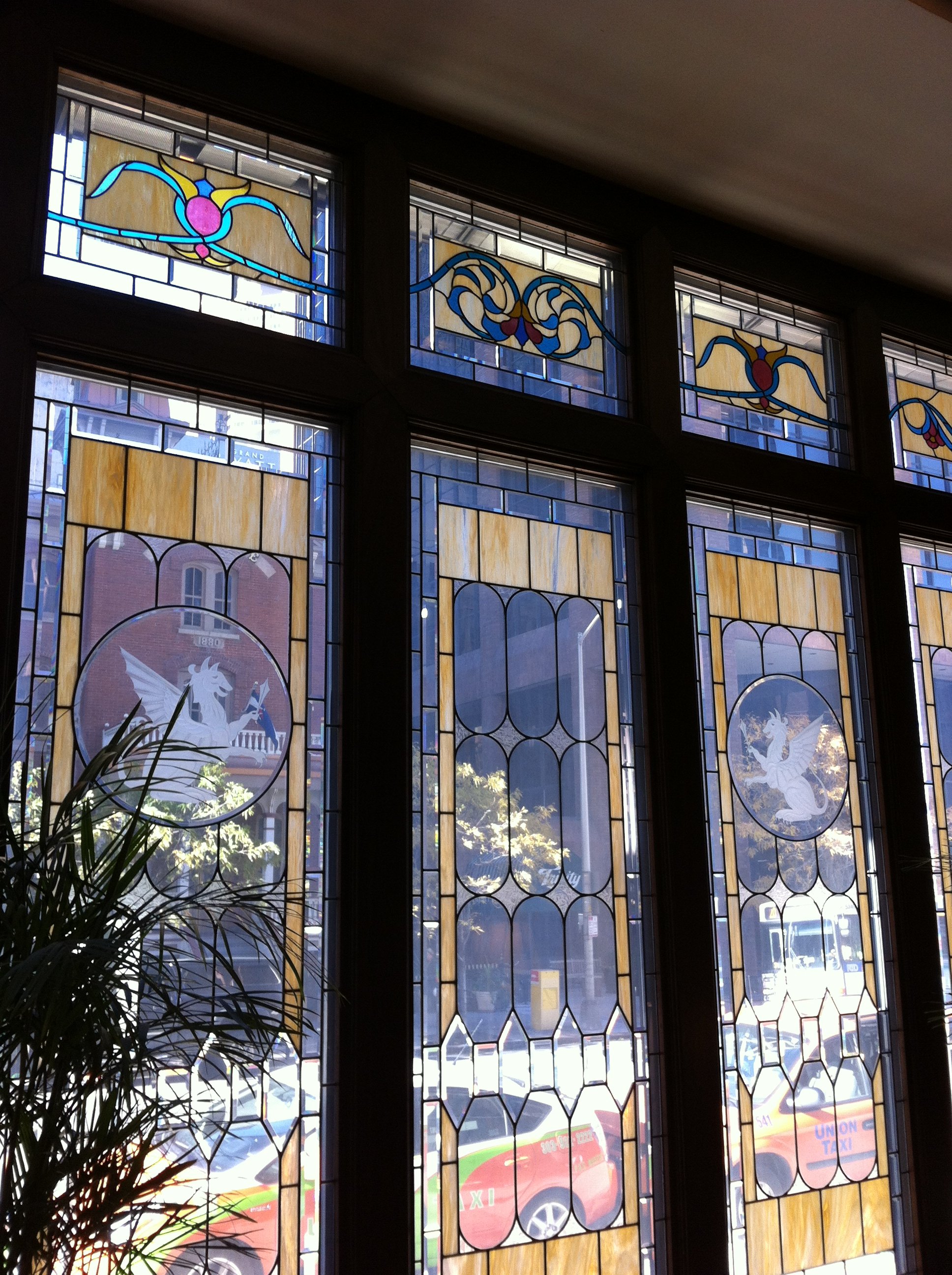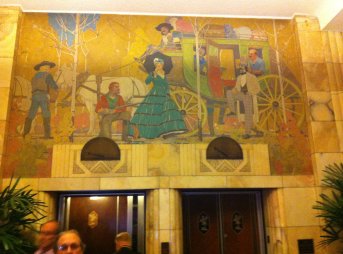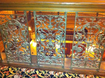 The hotel’s artful railings surrounding the atrium have a story. Likely out of whimsy, artisans installed two of these cast iron panels upside-down. (Years ago, Dottie and I had been told about this and discovered one on a visit.) I mentioned it to Toyota’s Jana Hartline and she in turn concocted a contest: The first person identifying a location of an upside-down panel to her would win a prize from Toyota “of indescribable value” together with mention here in SimanaitisSays.com.