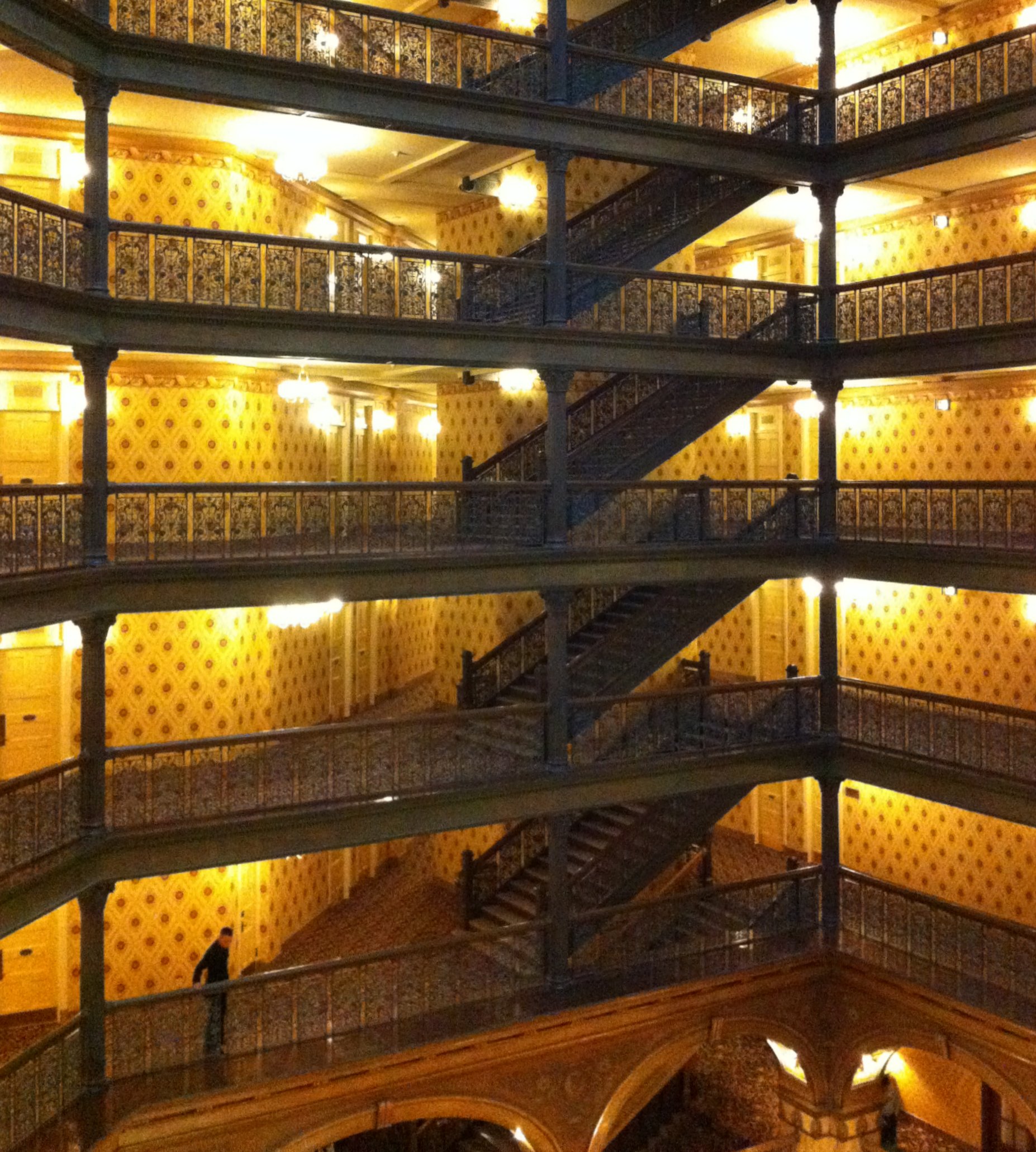 Guests in the 1890s were heavy into cardio without knowing it. There are elevators today. Also, note the ornate railings surrounding the atrium.