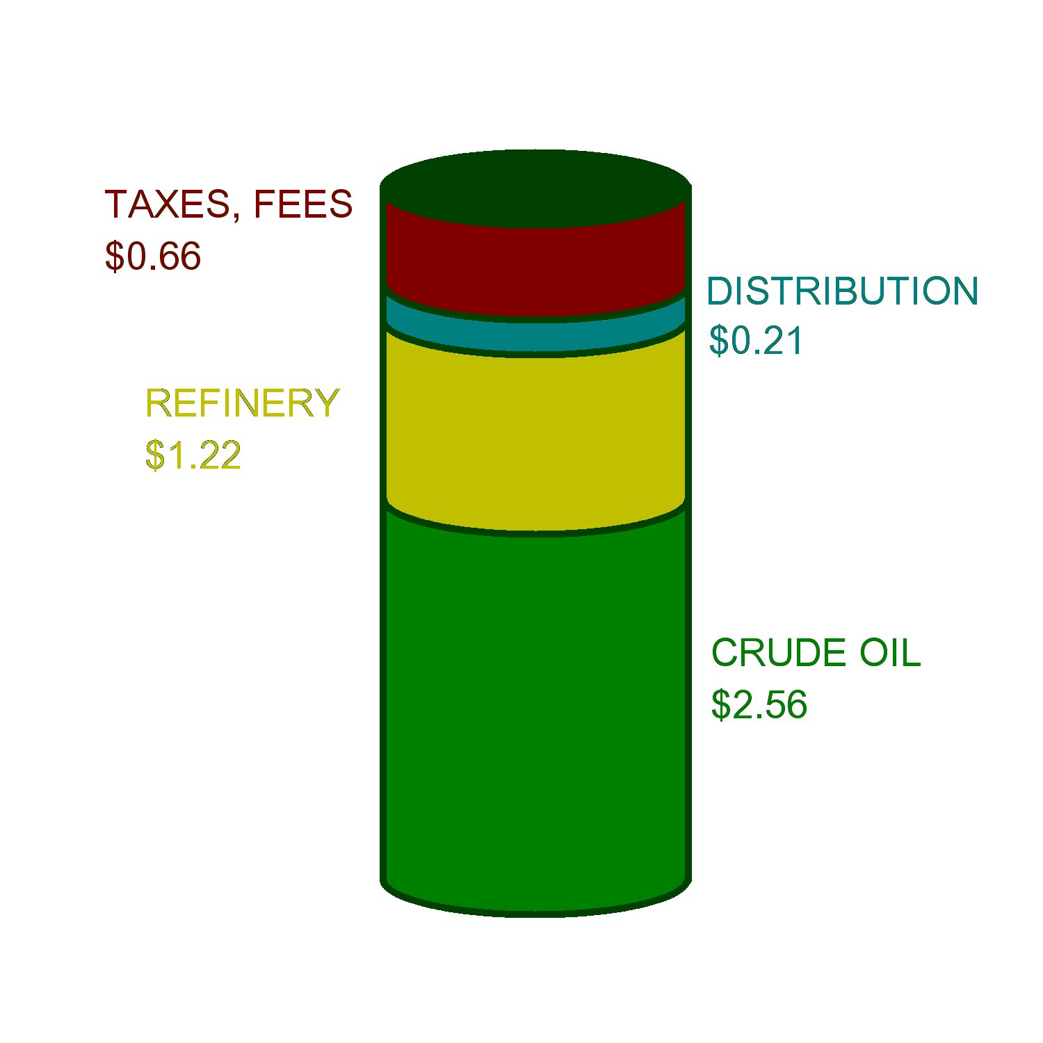 Here’s where my $4.65 goes for a gallon of gasoline. Data for Oct. 8, 2012, from energyalmanac.ca.gov.