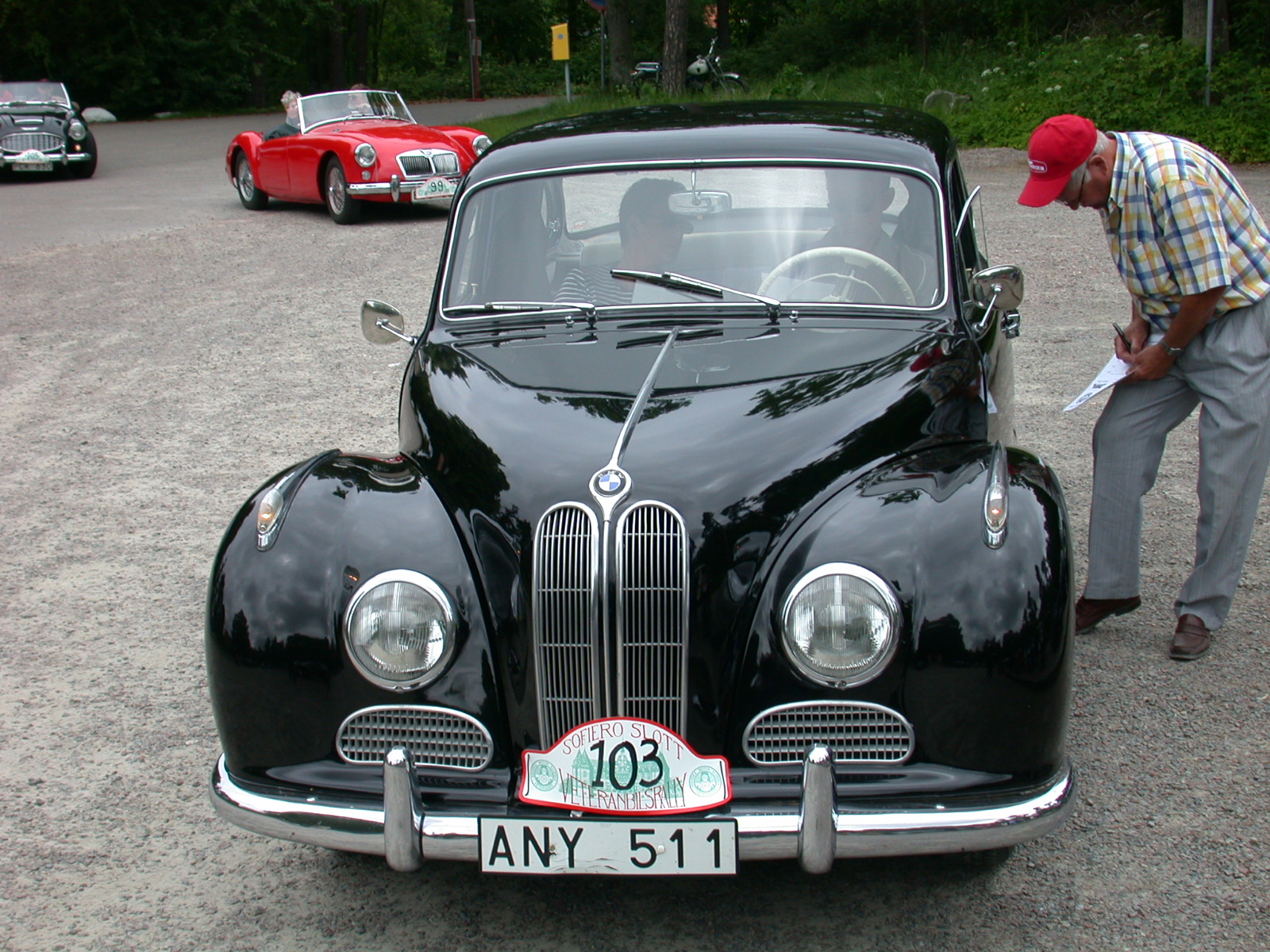 This rare BMW 501 dates from 1959. Behind it is part of the rally’s English contingent, an MGA and Austin-Healey.