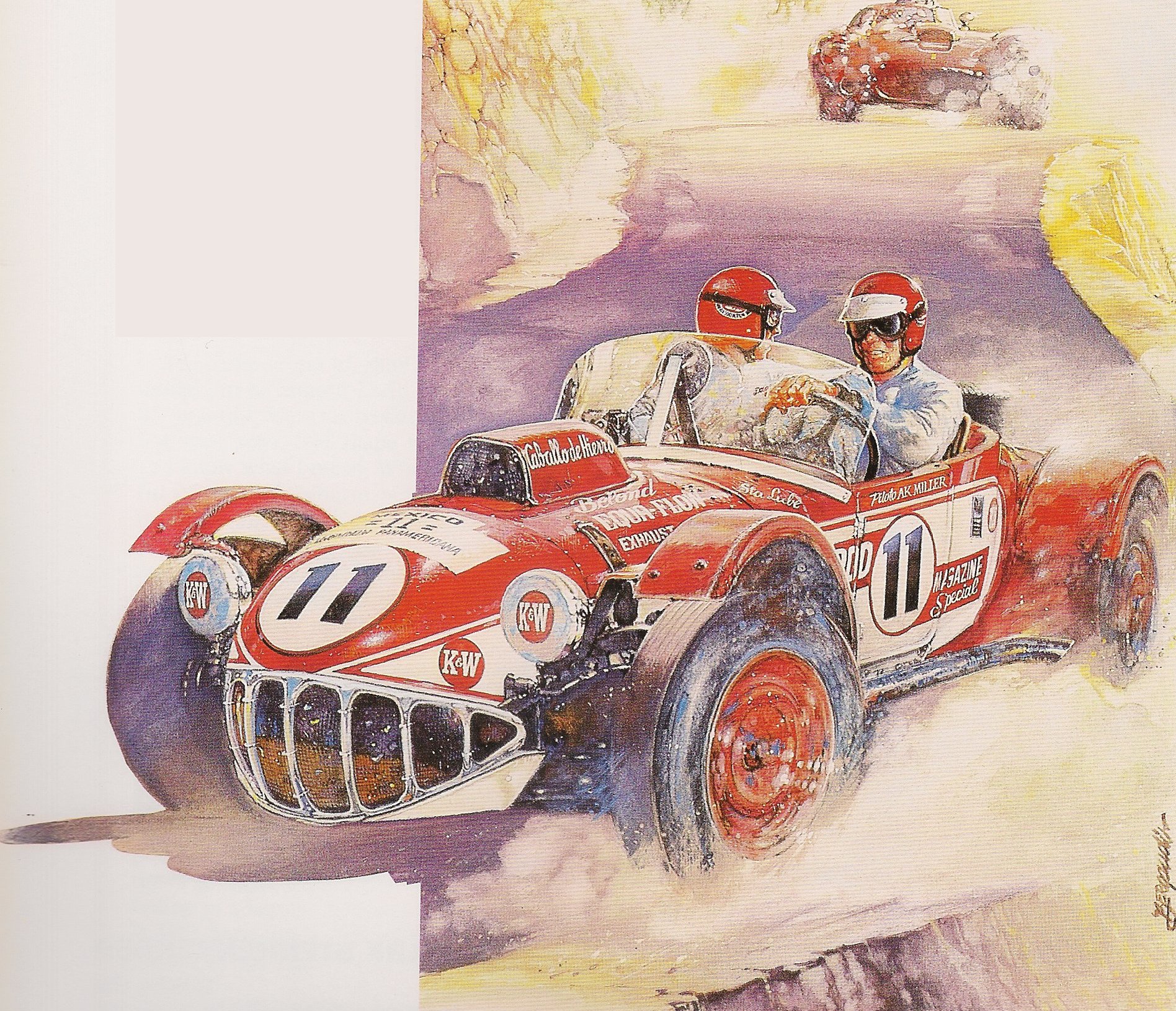 What about hot rods? Californian Ak Miller offered excellent evidence that a hot rod could meet the definition. His Caballo de Hierro, or Iron Horse, demonstrated its prowess in the Carrera Panamericana. Later, he took another of his homebuilts to the Mille Miglia. Speeding Past, by Hector Luis Bergandi, March 1982.