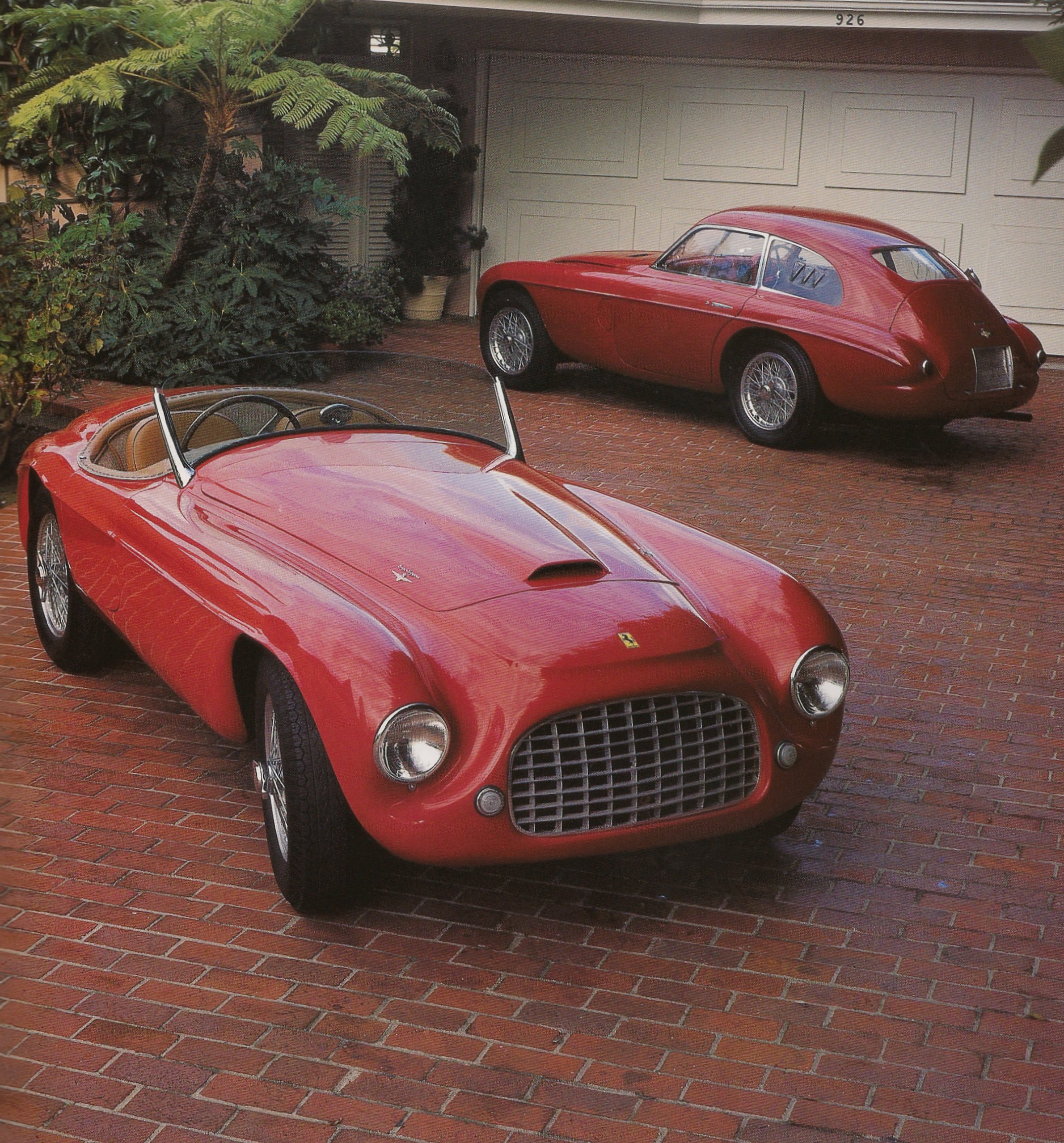 Must it be a roadster? Not necessarily with a choice as delectable as these two Ferraris, restored and owned by John and Elaine Bond. Ferrari 166MM Barchetta & Berlinetta, by Joe Rusz, February 1973.