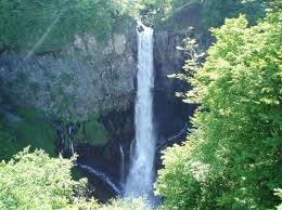 To the west of Nikko are formidable mountains of volcanic origin. Nestled within them are Lake Chūzenji and, flowing from it, Kegon Falls.