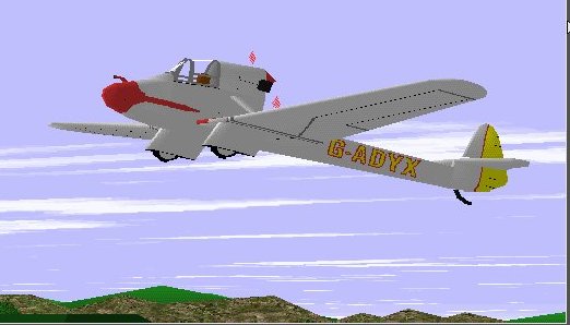 The 1938 Luton L.A.3 Buzzard was a powered sailplane, its engine a secondhand Anzani. This is my Microsoft Flight Simulator model.