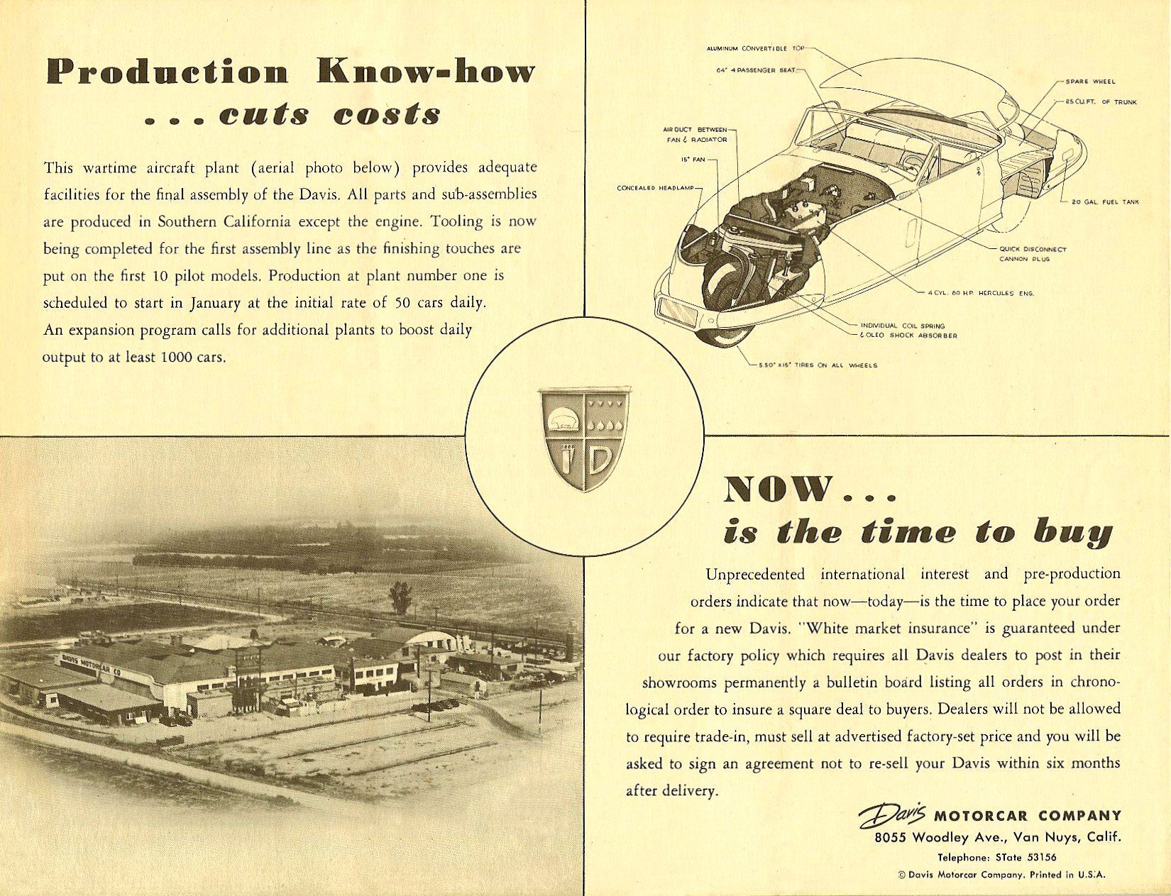 The Davis brochure promised a January 1948 startup of 50 cars each day, with plans for a lot more. Image from www.chuckstoyland.com.
