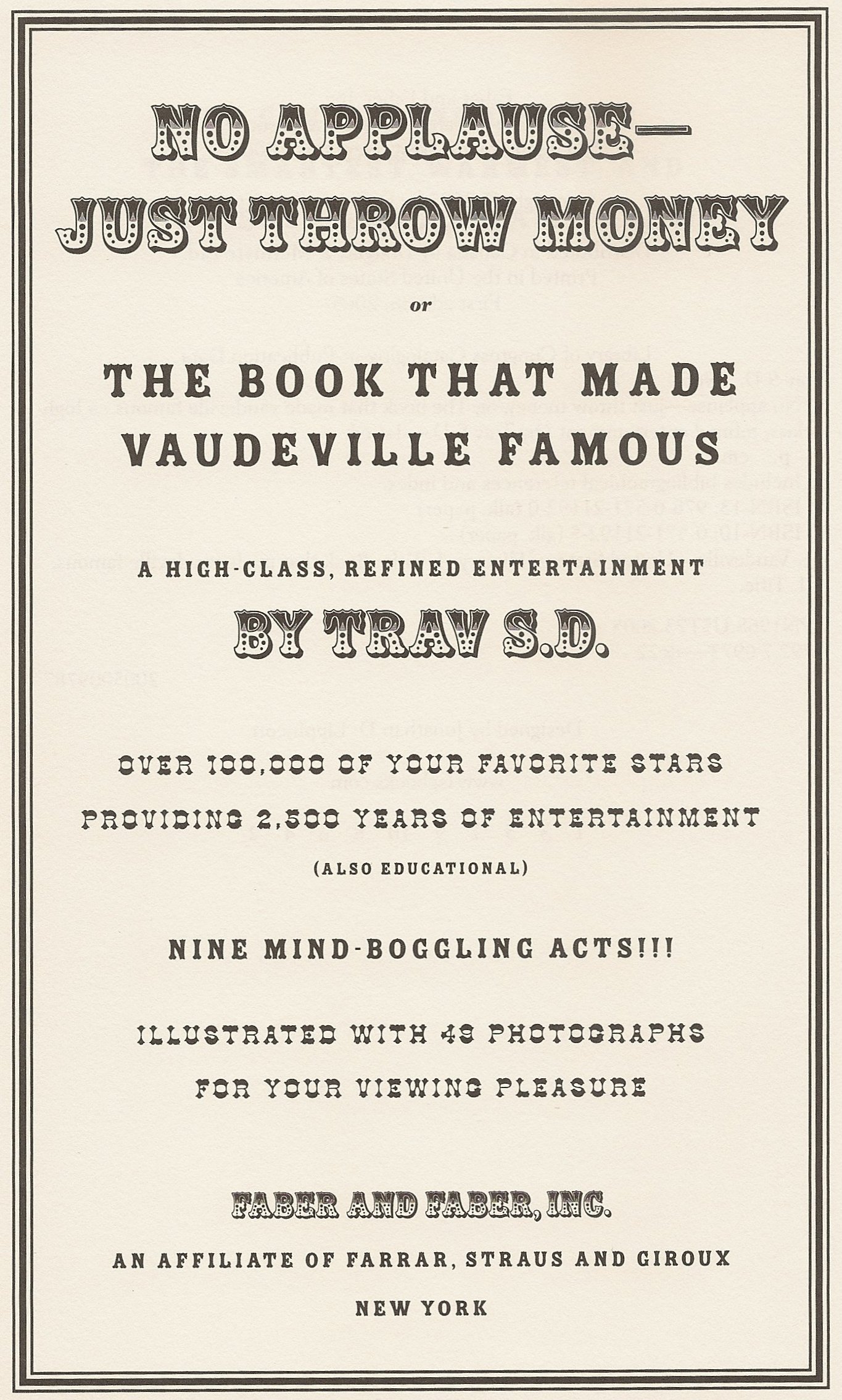 The title page of No Applause—Just Throw Money suggests its editorial intent and delight.