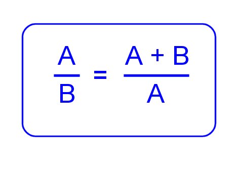 Algebraically, A/B =(A+B)/A, which (remember “cross-multiplying”?) implies that A2 = B (A + B) = A B + B2. Fooling around algebraically, this is equivalent to A2 – AB – B2 = 0.