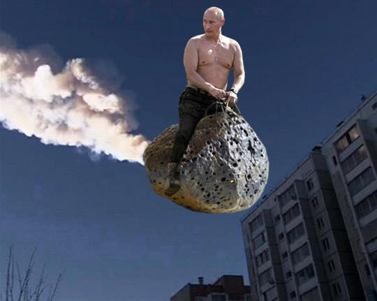 This was over Chelyabinsk, Russia, at 3:20 GMT (just 16 hours before 2012 DA14’s flyby). This meteor was initially travelling around 40,000 mph. At about 60,000 ft. it exploded with the force of 500 kilotons—about 30 times that destroying Hiroshima. The airblast broke windows and other structures; more than 1000 people were injured, mostly by flying glass.