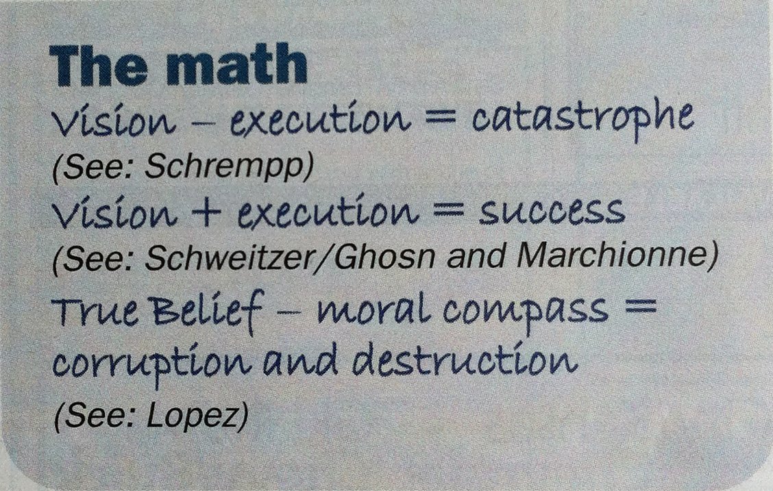 So true, and left Chrysler a sitting duck for the Best Dealmaker (see below). Brown’s lesson is noteworthy: “Beware visionaries. Execution matters.”