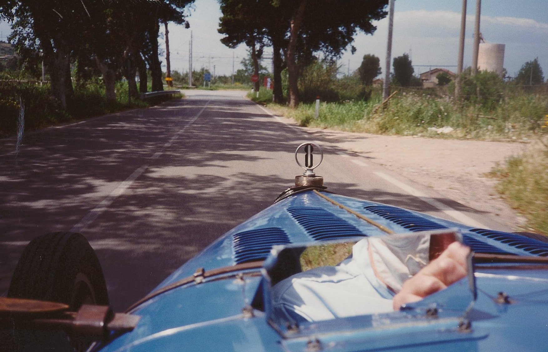 A view of Piccolo Madonie from the left seat of a Type 35 Bugatti. Riding mechanics in those days were evidently smaller guys.