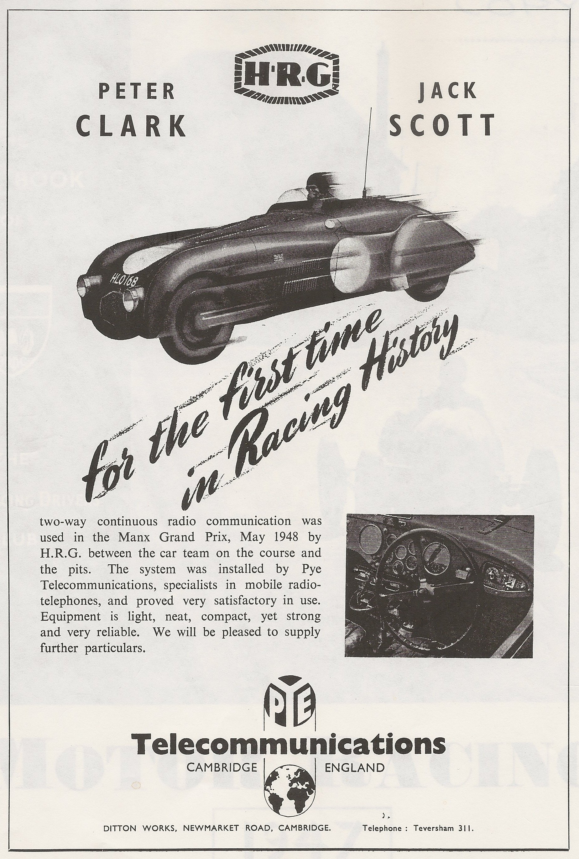 A contemporary ad for Pye Telecommunications, in The Year Book for the British Racing Drivers’ Club: Motor Racing 1947.