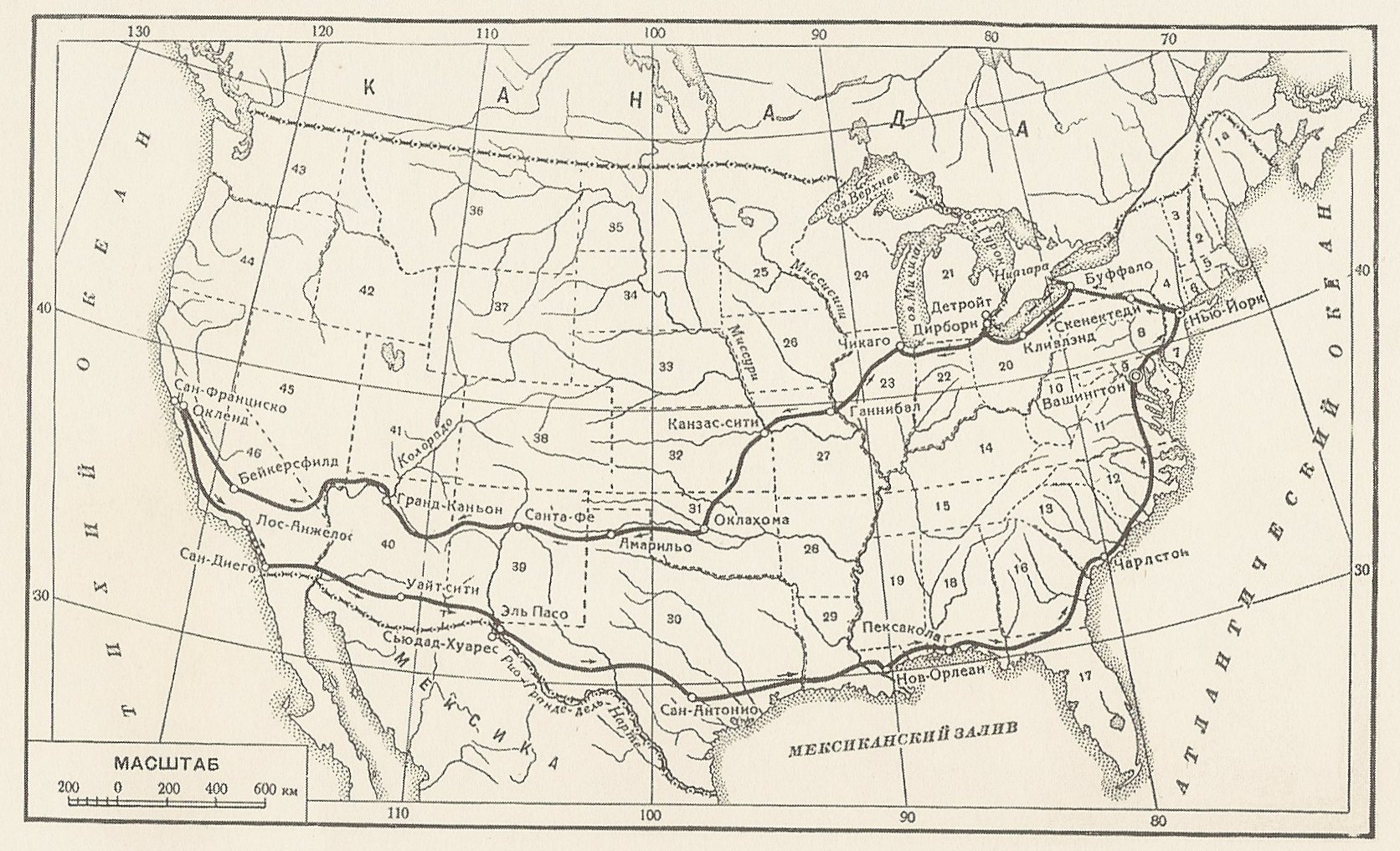 Just like younger people today, Ilf and Petrov were amazed by the concept of service station back then. “The tank has been filled….However, the gentleman in the striped cap and leather bow-tie doesn’t let them go. The great American service begins.”