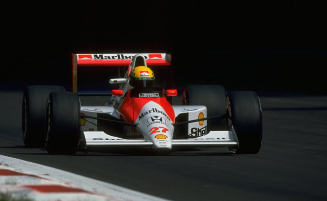 One of Ayrton Senna’s many victories with McLaren was here at 1990 Monza; teammate Gerhard Berger came 3rd. Alain Prost, destined to join McLaren in 1991, was 2nd at this race in his Ferrari.