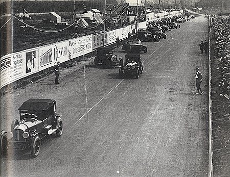 In 1924-1928, drivers did more than run across the track: Those with open cars had to erect the soft top, and this structure had to survive 20 laps. In one race, a small sedan led—ever so briefly—because its driver had no top-fiddling to do. In 1927, one of the favored Bentleys had to stop after 100 yards when the top came loose.