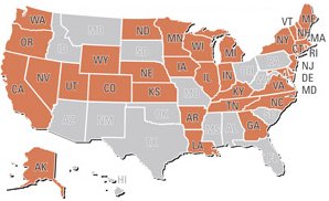 Conventional texting while driving is prohibited (in brown). Image from the Insurance Institute for Highway Safety and State Highway Safety Offices.