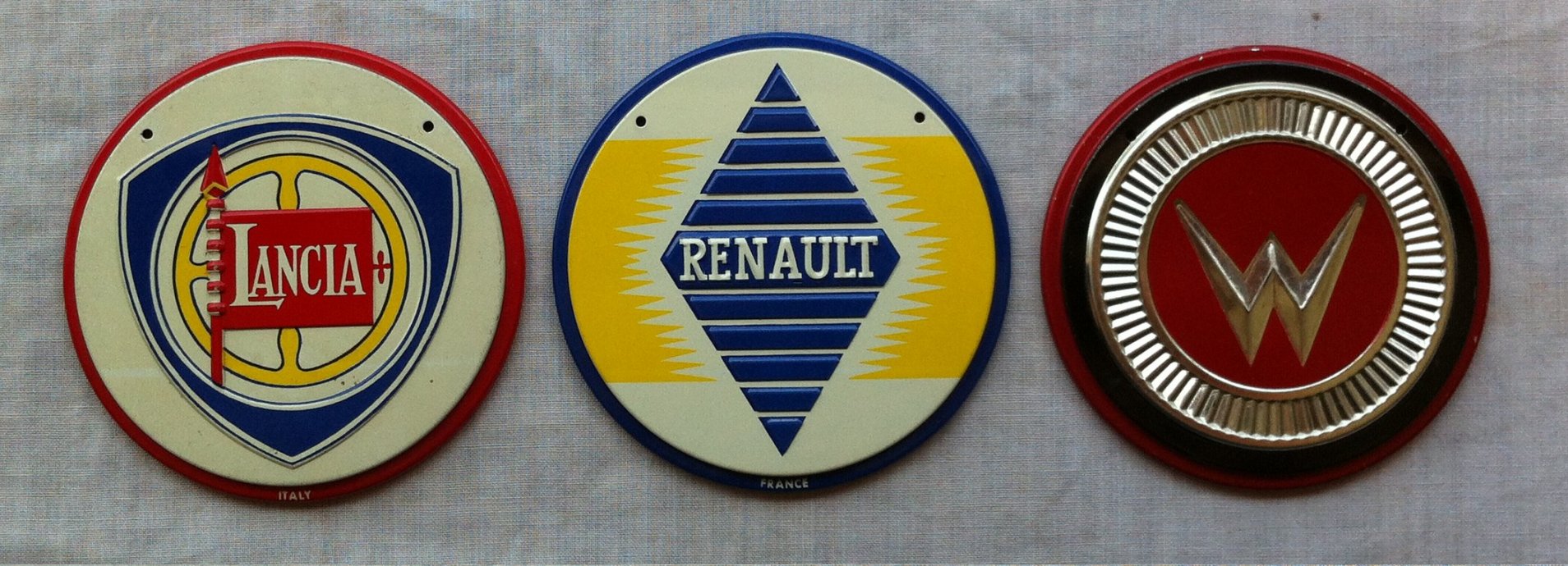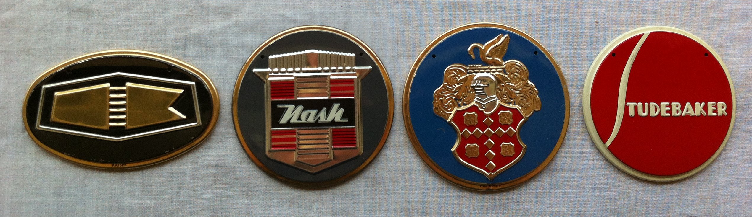 Here is my collection of these badges, with commentary on the marques. Data come from The Complete Encyclopedia of Motorcars 1895 to the Present, edited by G.N. Georgano. Subsequent name changes, for example, DaimlerChrysler, Chrysler-Fiat, are ignored. Dates indicate the marque’s actual use, not trademark ownership.