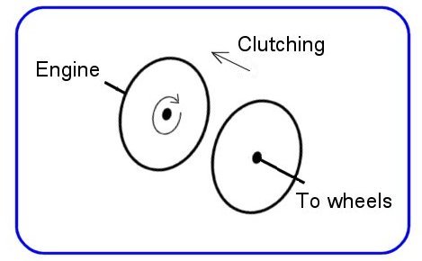 I recall teaching daughter Suz to drive, by her choice in a stick-shift car. I drew her a rudimentary sketch of a spinning disc being brought against a stationary one, the point being to get the second one gradually spinning.