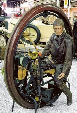 In 1910, a fellow in Paris named Erich Edison-Puton came up with the idea of powering a unicycle with a 150-cc 3.5-hp De Dion one-cylinder mounted within its rim. What’s more, this is where he sat as well.