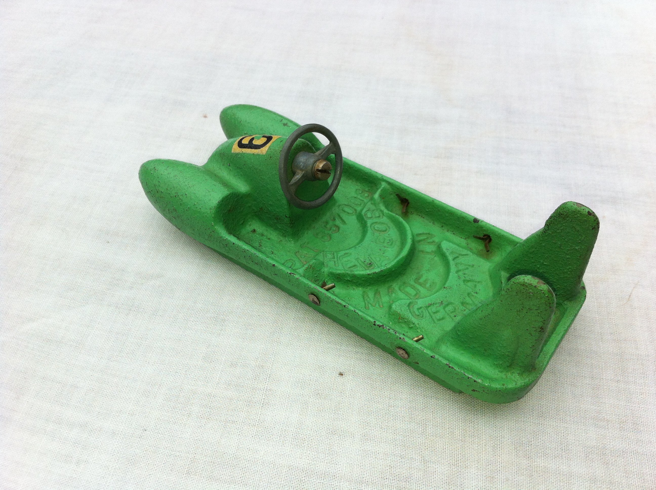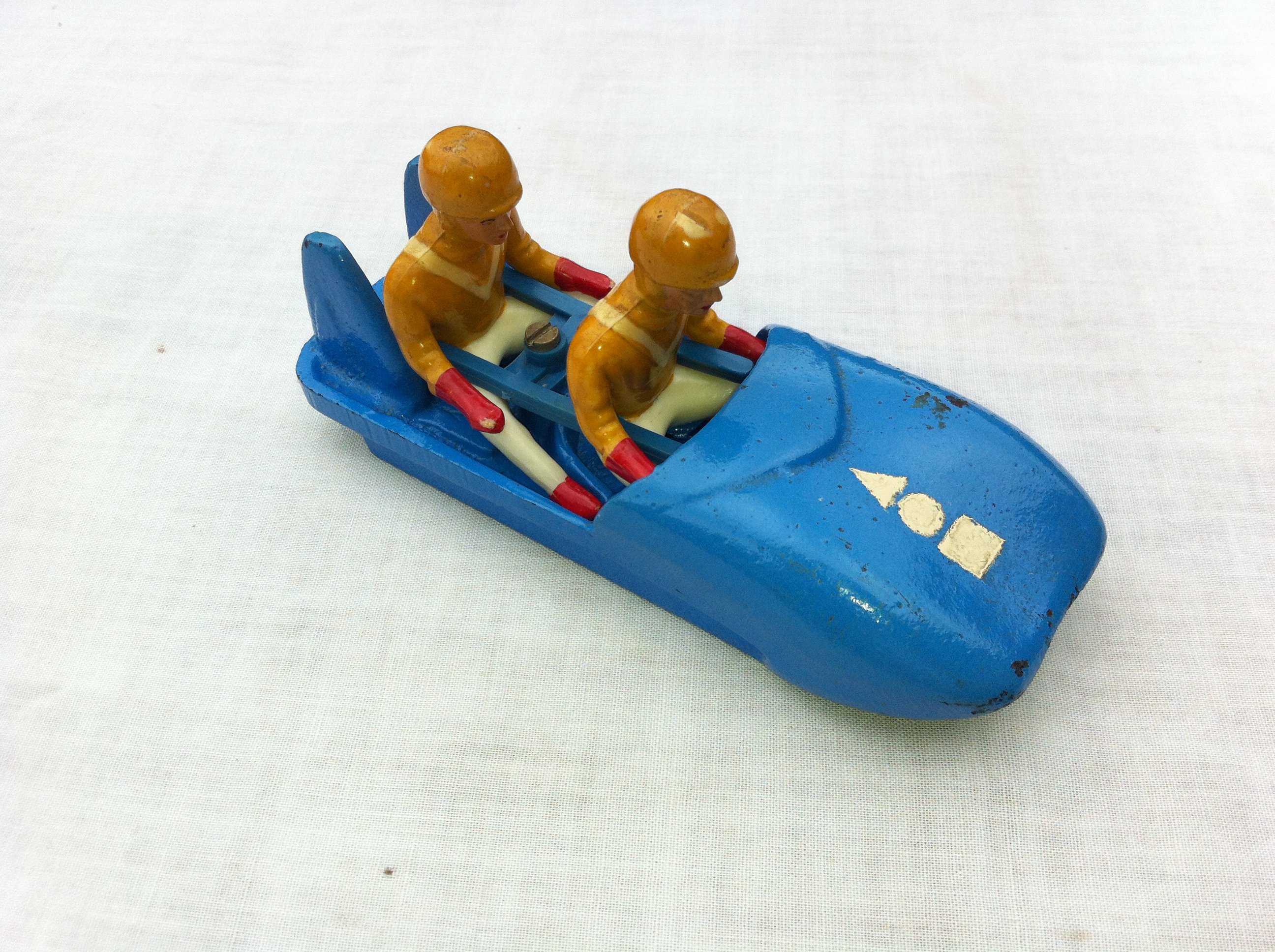 “Great racing, enormous speed! Wonderful miniature toys.” They certainly weren’t lightweights. The two-man Hela Bob weighs about 450 g/1 lb. and is 5 inches long; the four-man bob, 750 g/1.6 lb., 7 inches long.