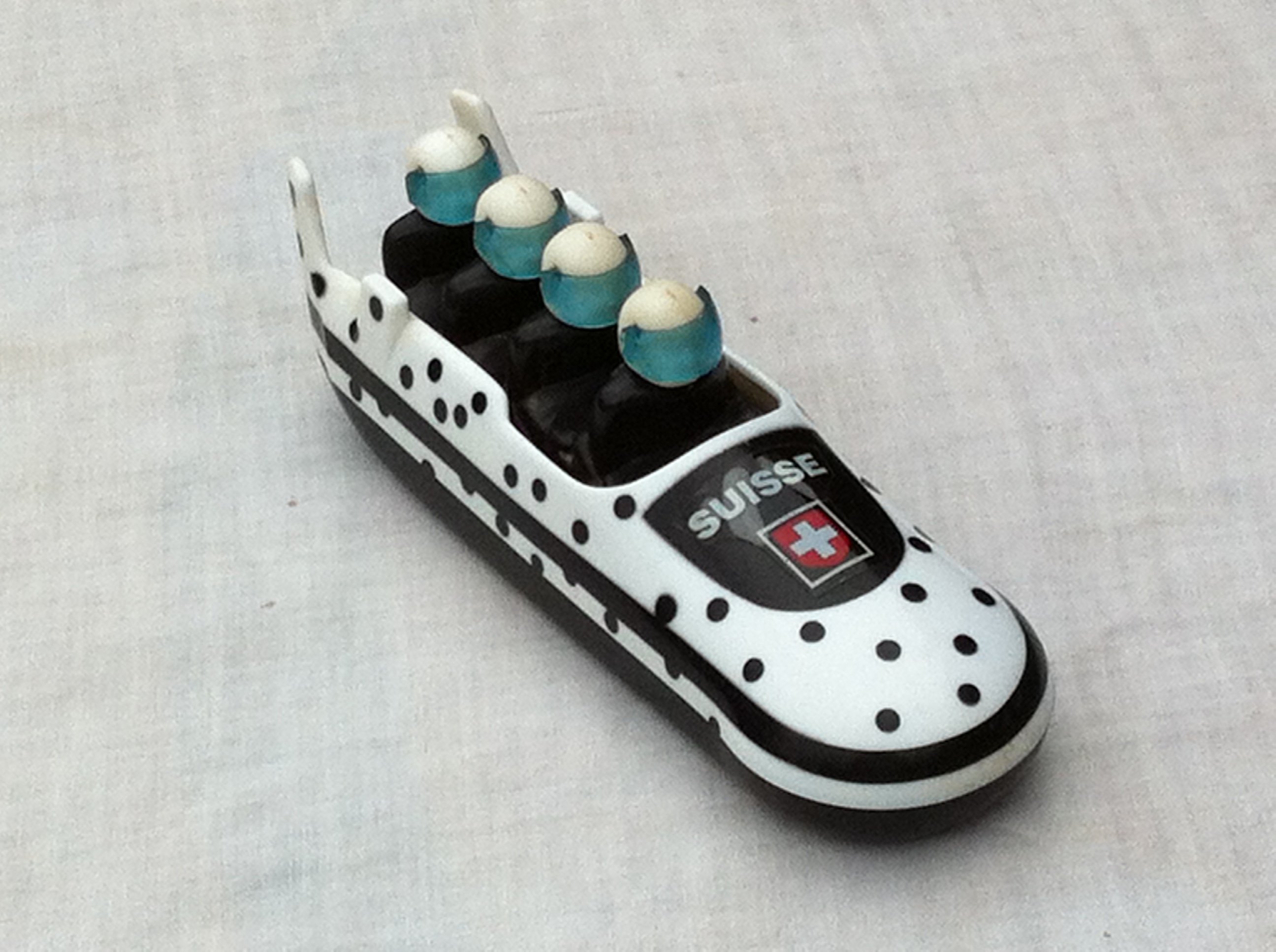 Needless to say, bobsledding has been a life’s wish (death wish?) left unsatisfied. However, I’ve done the next best thing in assembling a modest collection of bobsled models. Plus, I had an adventure of my own in the ancestral home of bobsledding, St. Moritz, Switzerland.