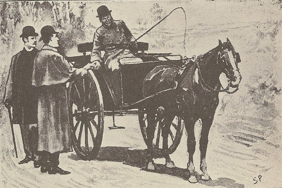 “We got off, paid our fare, and the trap rattled back on its way to Leatherhead.” From “The Adventure of the Speckled Band.” Image from Baring-Gould.