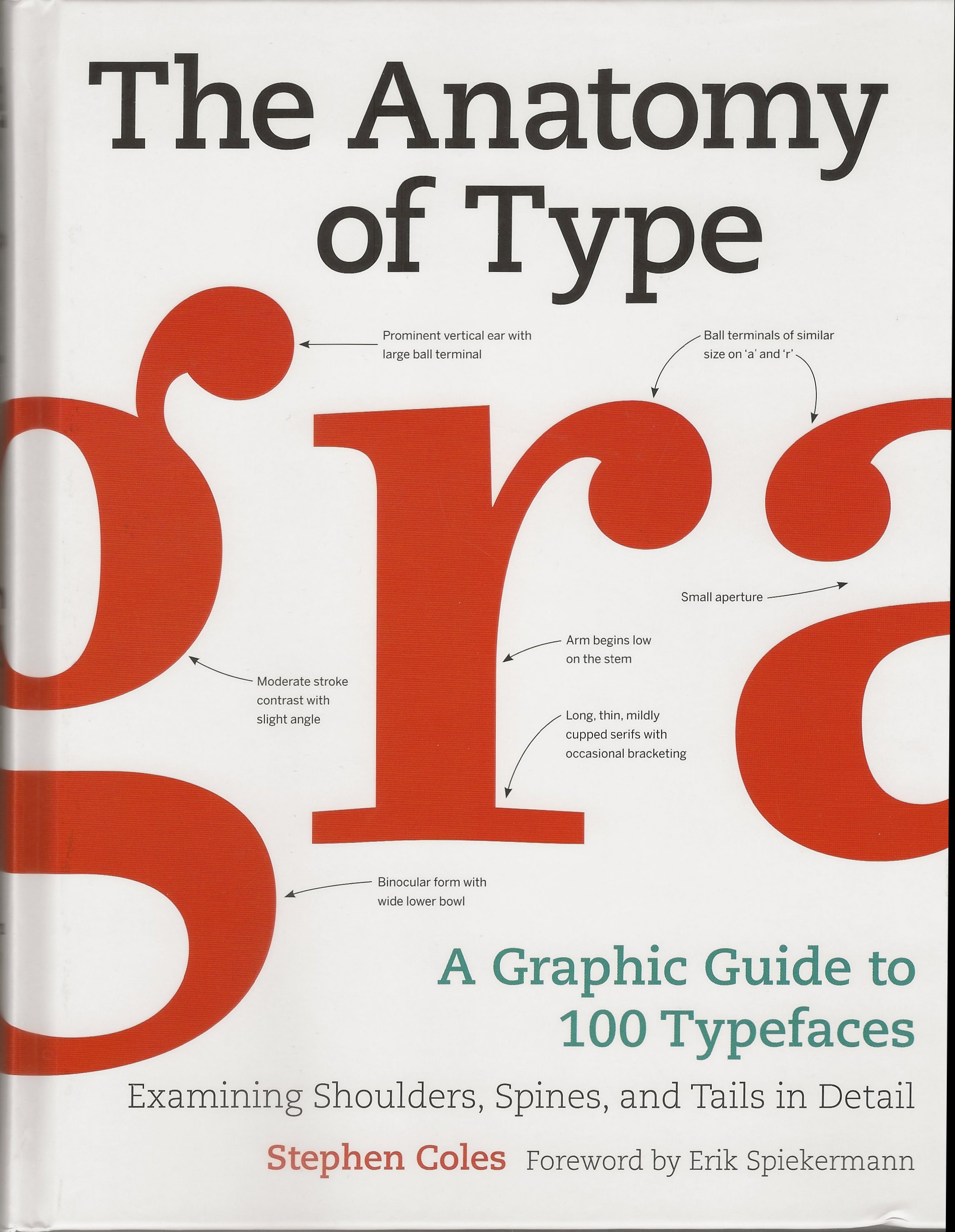 The Anatomy of Type: A Graphic Guide to 100 Typefaces, Examining Shoulders, Spins, and Tails in Detail, by Stephen Coles, foreward by Erik Spiekermann, Harper Design, 2012. Both www.amazon.com and www.abebooks.com list it.