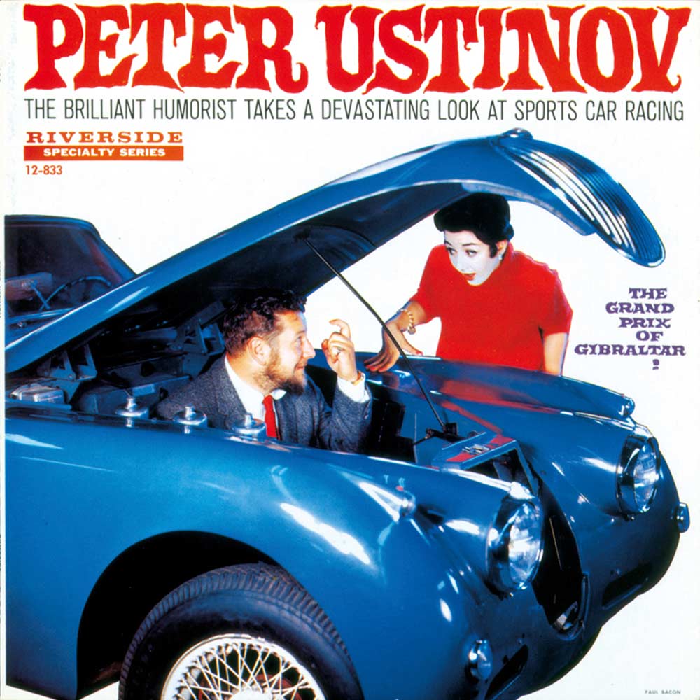 The Grand Prix of Gibraltar! The Brilliant Humorist Takes a Devastating Look at Sports Car Racing, Peter Ustinov, Riverside Records, 1958. This vinyl version is listed at www.abebooks.com. CD and MP3 versions are listed at www.amazon.com.