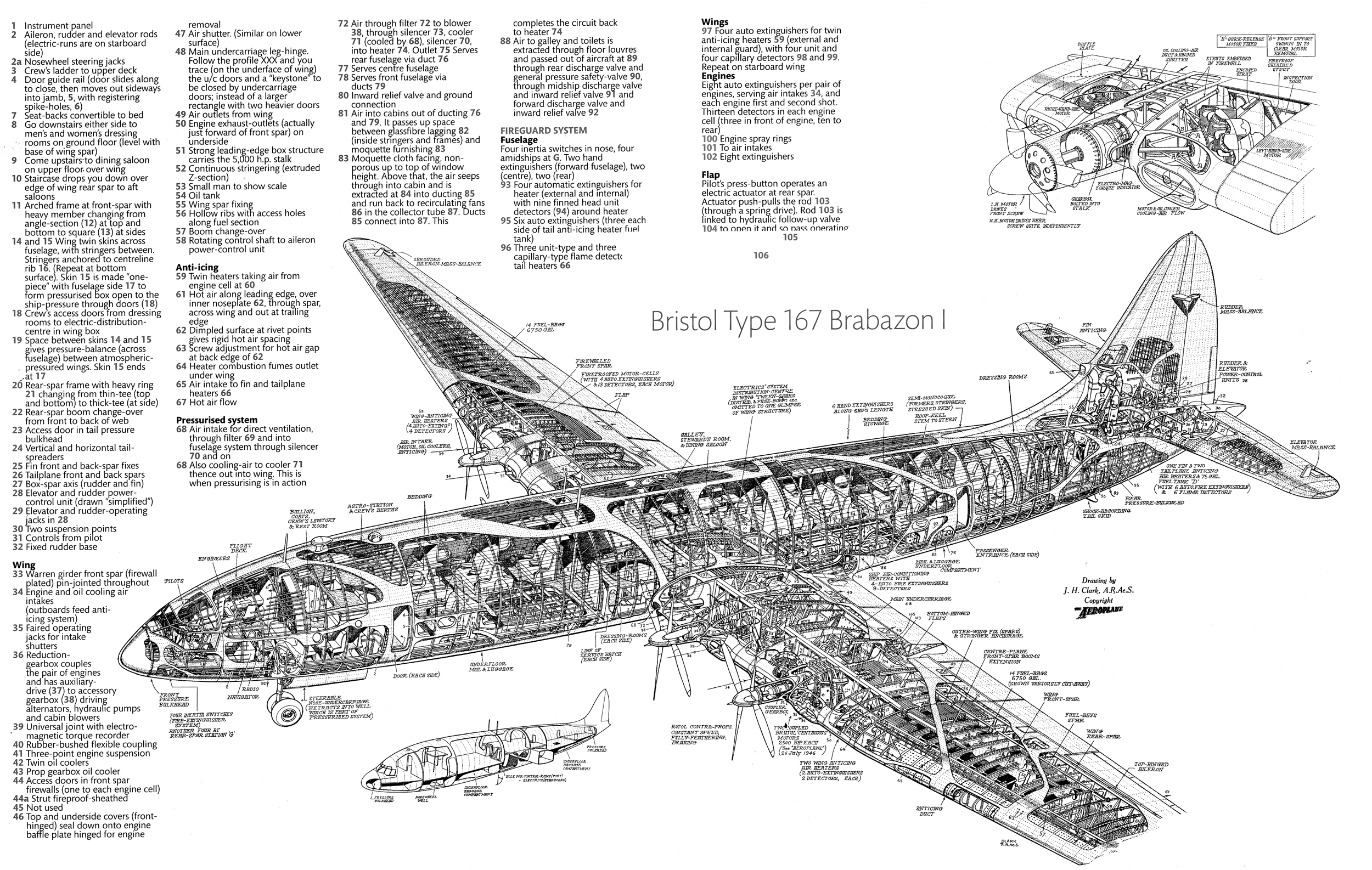 Initial specifications called for Bristol Centaurus engines, each a twin-bank 18-cylinder sleeve-valve air-cooled radial of 53.6 liters. This was the last and largest of Bristol’s sleeve-valve piston engines, as opposed to the first of the technically superior Proteus turbine engine being developed by the company.