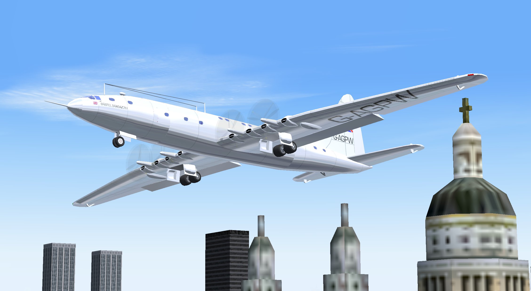 My Bristol Brabazon buzzes St. Paul’s in Microsoft Flight Simulator. Don’t try this at home, kids; we’re professionals.