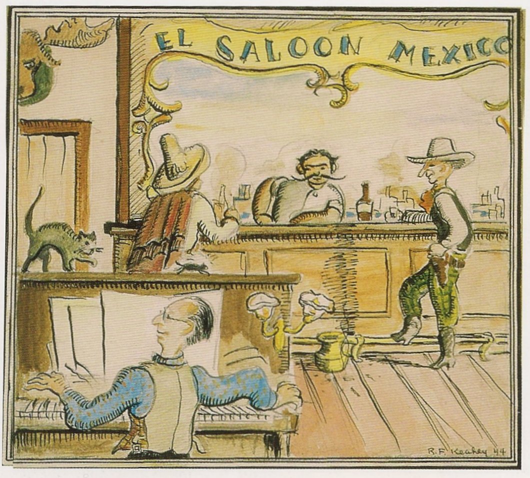 El Saloon Mexico, by Ruth Keahey, watercolor on paper, 1944.