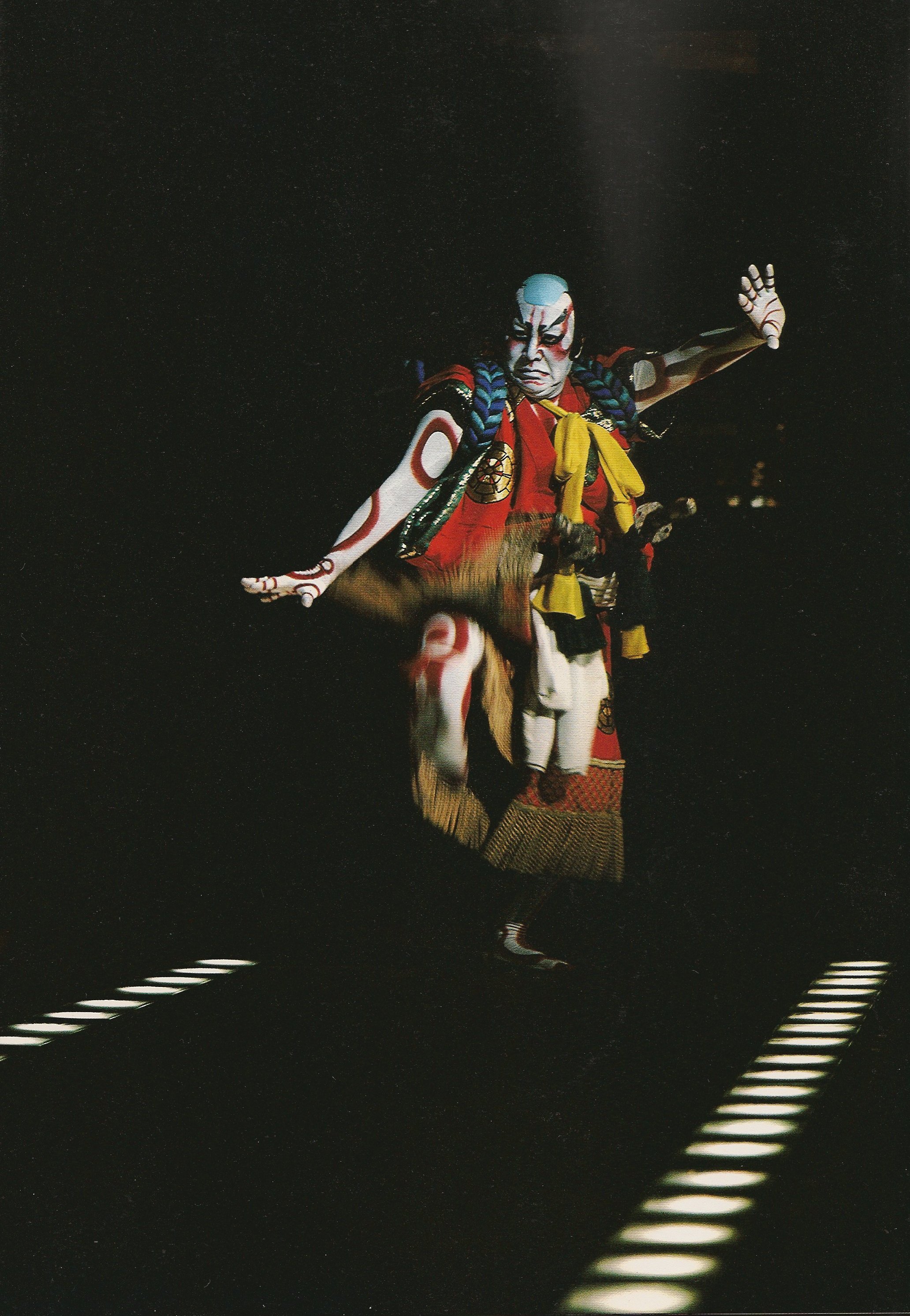 This kumadori makeup of an Aragoto character (Kabuki “tough guy”) enhances his superhuman aura. Image from The Culture of Anima.