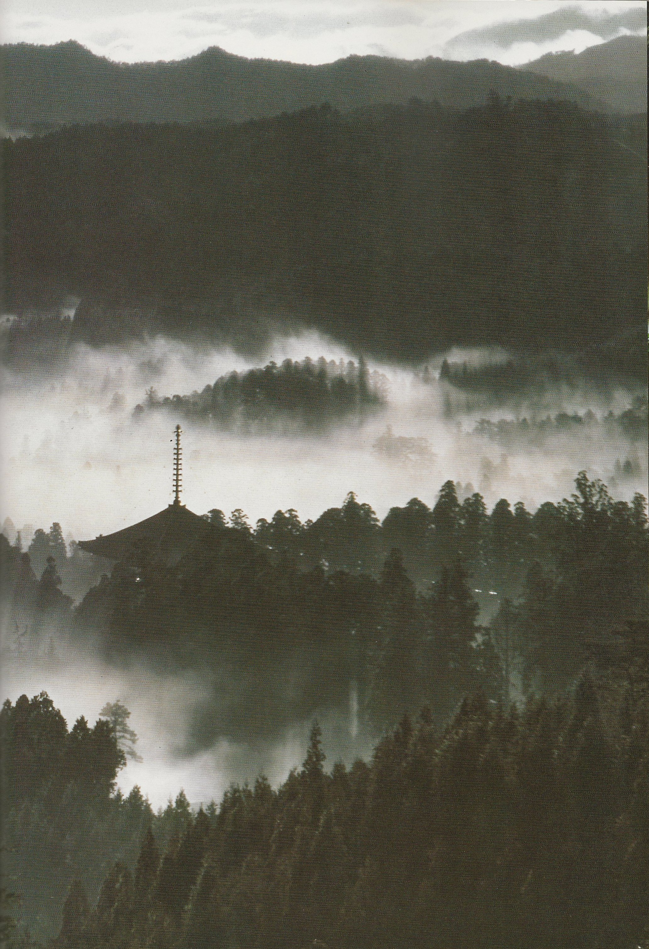 Mist around Yamato region. It’s a place evidently rich in anima, yet note the aesthetic adventure of that modern transmission tower. Image by Iwamiya Takeji from Wabi Sabi Suki.