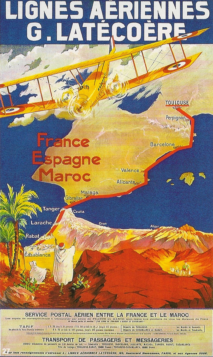 Demobbed in 1924, Mermoz applied for work in civil aviation with la Compagnie générale d’entreprises aéronautique, in time called simply Aéropostale. Showing off his aerial bravado to Didier Daurat, his prospective boss, Mermoz was told, “Je n’ai pas besoin d’artistes de cirque, mais conducteurs d’autobus.” [“I don’t need circus artists, just bus drivers.”]