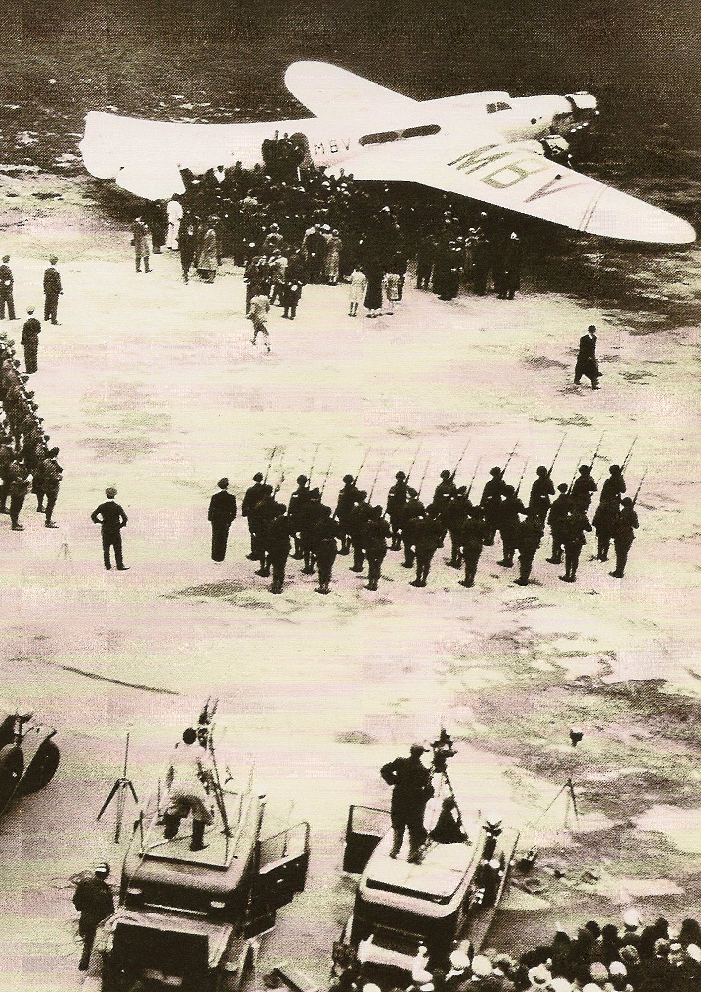 The Arc-en-Ciel made a triumphal return to France after its South Atlantic crossing. Crowds swarm it at le Bourget Airport, Paris, May 1933. Image from Mermoz.
