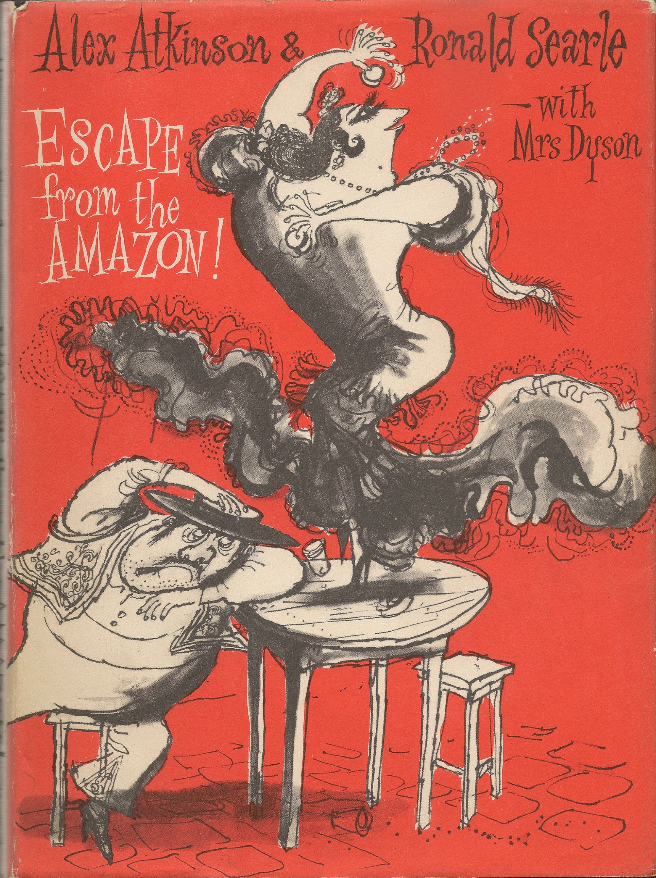 Escape from the Amazon!, by Alex Atkinson and Ronald Searle, Perpetua Books, 1964. Both www.amazon.com and www.abebooks.com list it.