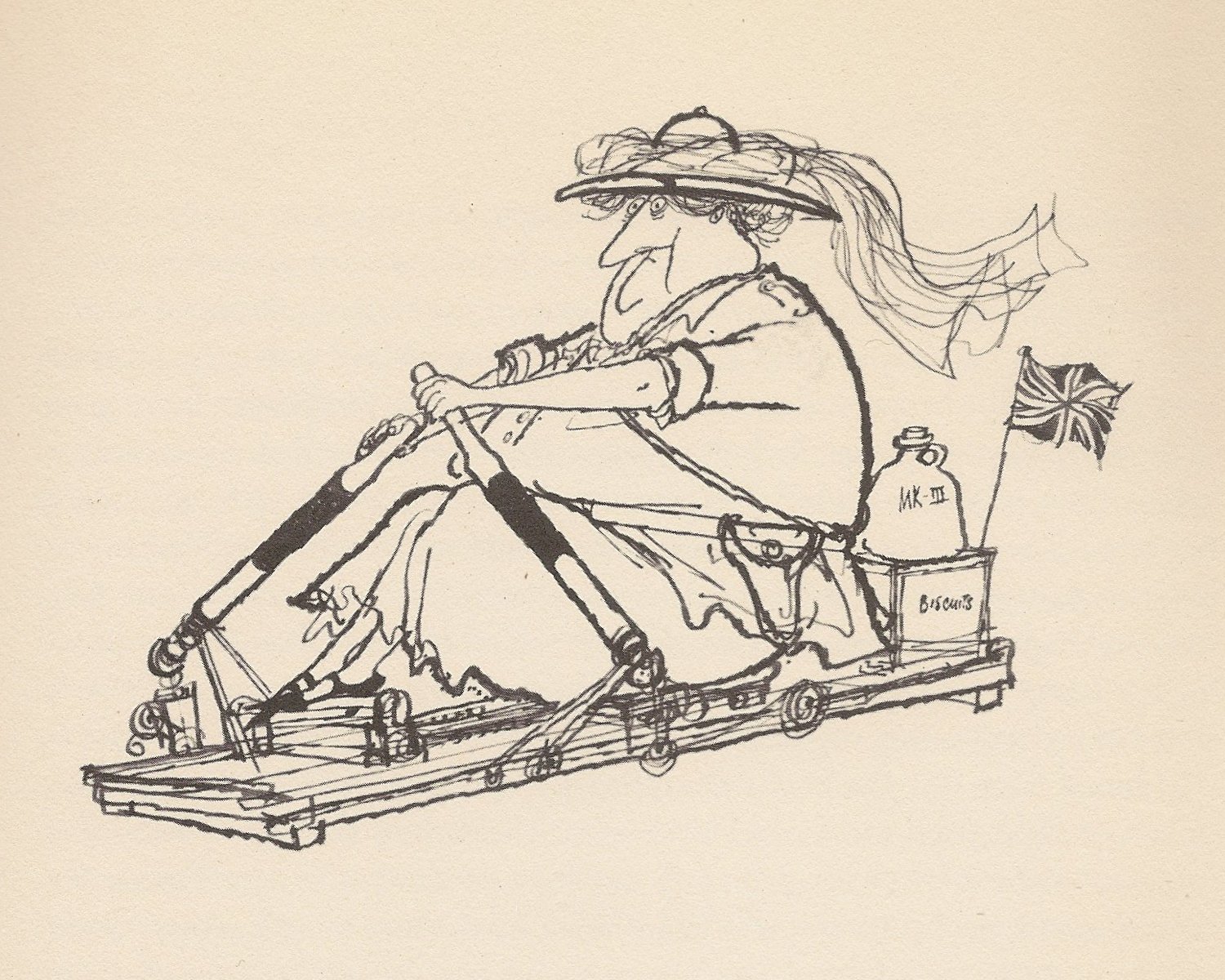 Atkinson and Searle specialize, tongues firmly in cheek, in elaborate travel tales written and illustrated by those who have never set foot in the place. Two previous volumes, By Rocking Chair Across America and By Rocking Chair Across Russia, had brief mention here (www.wp.me/p2ETap-ho). See also www.wp.me/p2ETap-Kz for more of Searle’s artful whimsy directed to oenology and book collecting.