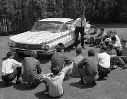 Strother “Mac” MacMinn (1919-1998), automotive design authority, executive and educator. Image of a 1960s outdoor seminar from Art Center Archives. See http://goo.gl/T851JR for a video with Mac.