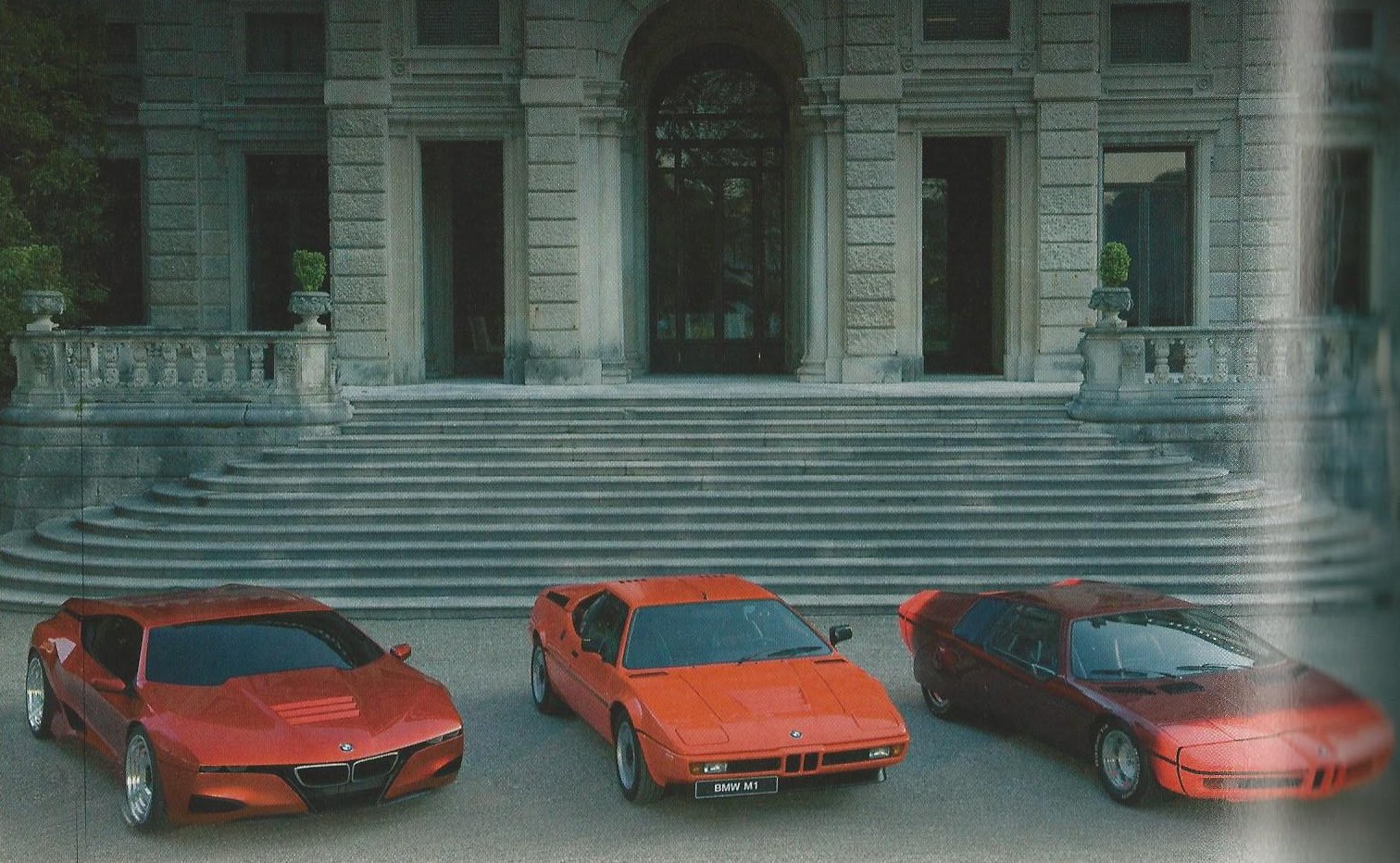 The BMW M1 Homage, left; the M1, middle; the M1’s Turbo concept predecessor, right, at Villa d’Este. Image from R&T, September 2008.