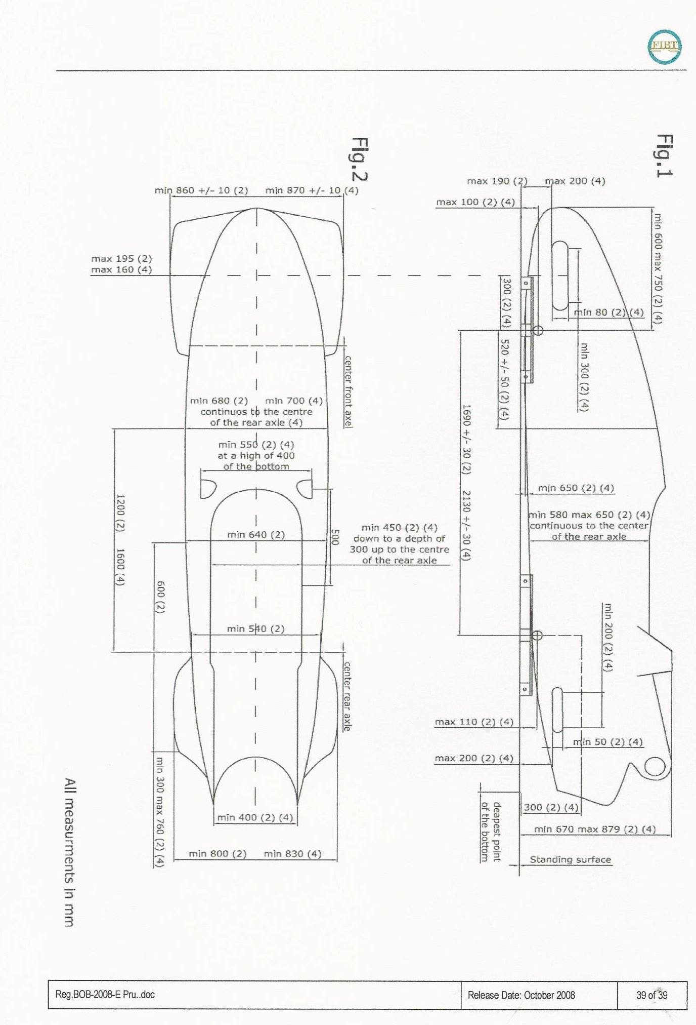 Dimensions of a two-person bobsleigh. Image from the Fédération Internationale de Bobsleigh et de Tobogganing regulations, page 39.