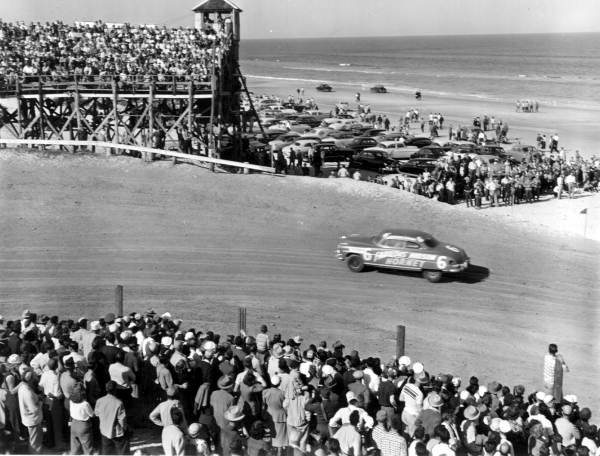 This was back when stock cars were stock and racing at Daytona Beach meant, indeed, racing on the beach.