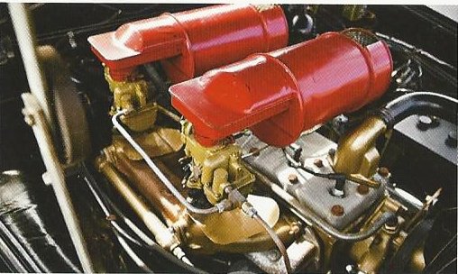 The Hornet’s inline-six, atop which resides its Twin H-Power intake manifold and dual carburetion. Image from Gooding & Company.
