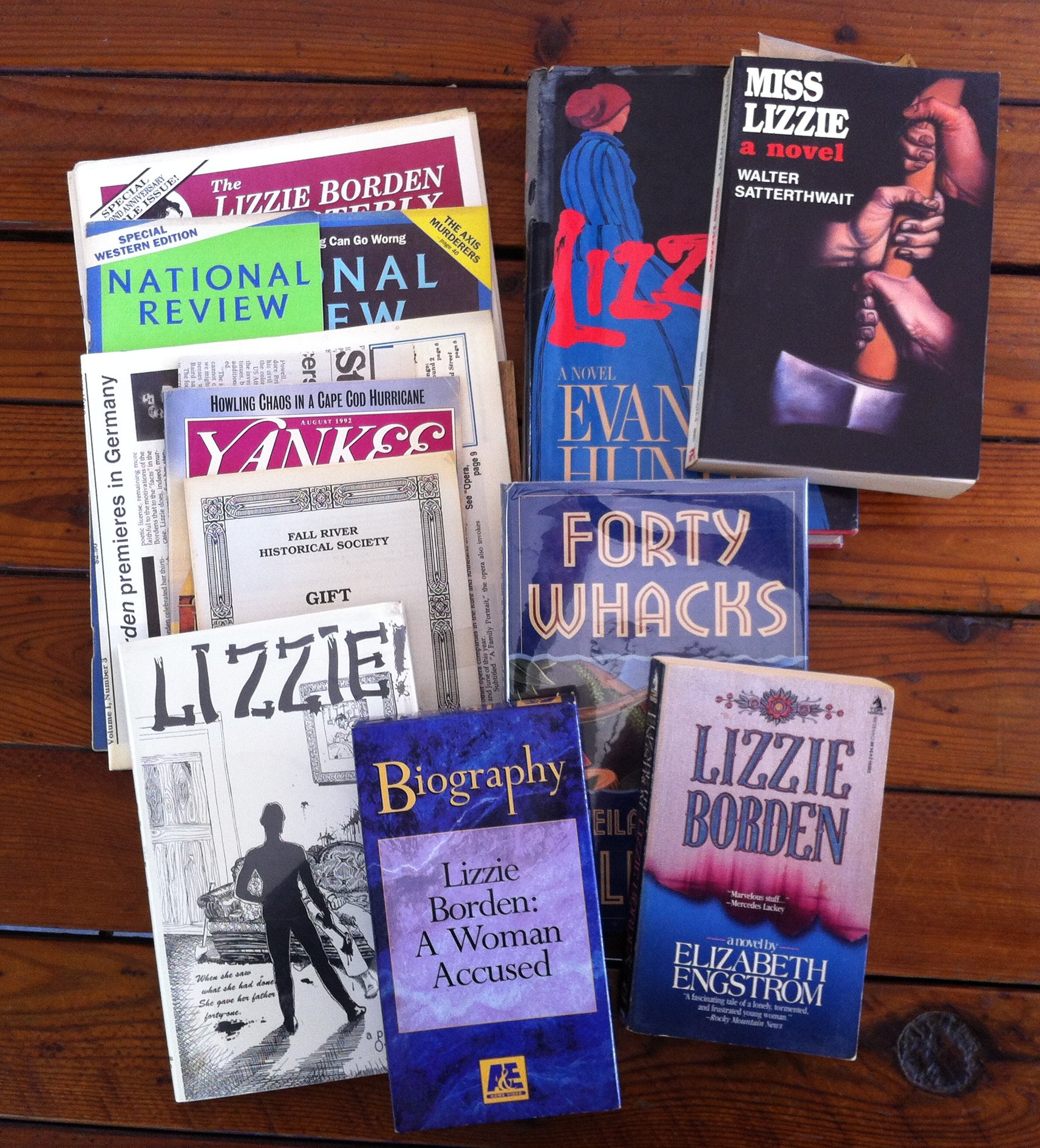 The collection includes novels, plays, Lizzie Borden: A Woman Accused, an A&E Home Video, and Borden ephemera.