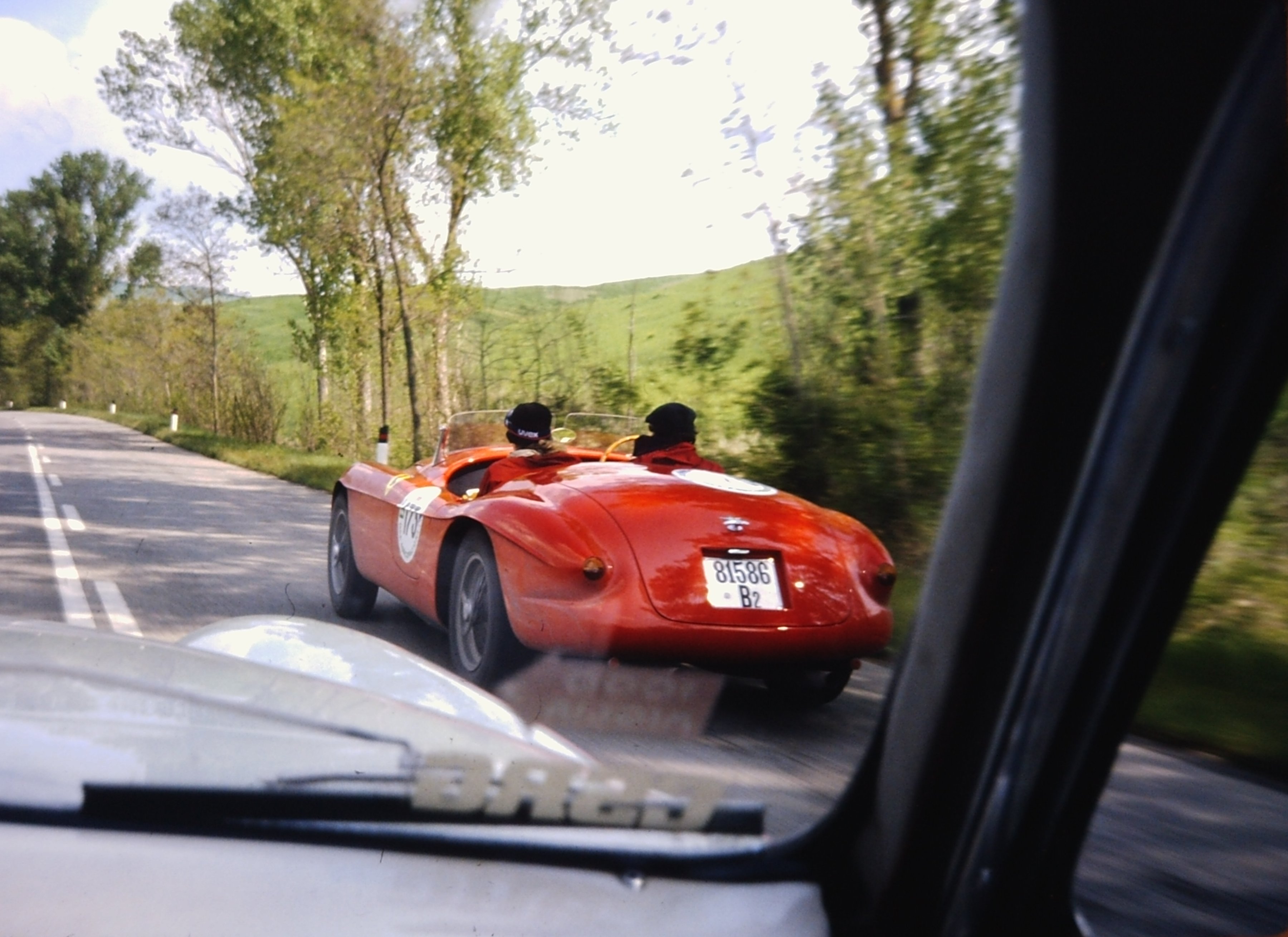 Martin Swig had his Alfa Romeo 1900 entered in the 1989 Storica, and he offered a co-driver role to automotive journalist T C Browne and me, T C accompanying Martin on the Brescia-Rome portion, I to follow the pack in a borrowed Fiat, then swap the co-driver role with T C for the run back to Brescia.