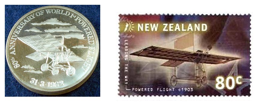 Commemorative medal issued in 1982 cited 1902 as Pearce’s earliest flight. New Zealand Centenary stamp cites the flight as “c. 1903.”