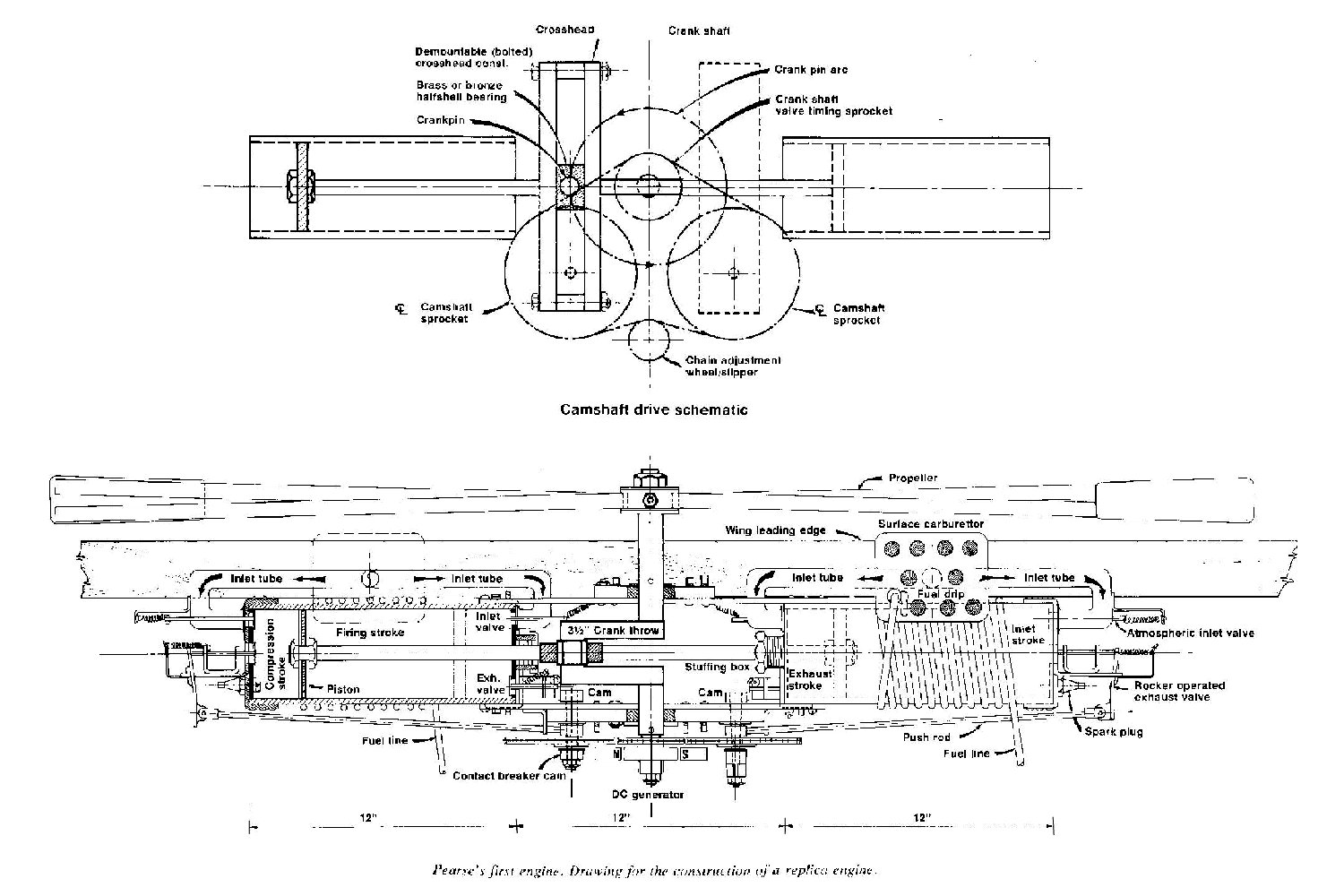 The Pearse engine design. All components, even the spark plugs, were of his own design and fabrication.