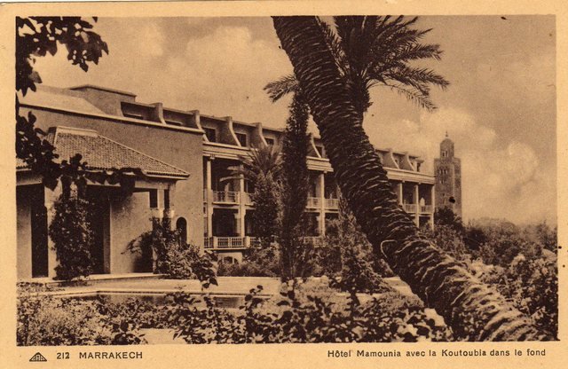 An early postcard of La Moumonia with the Koutoubia in the background.