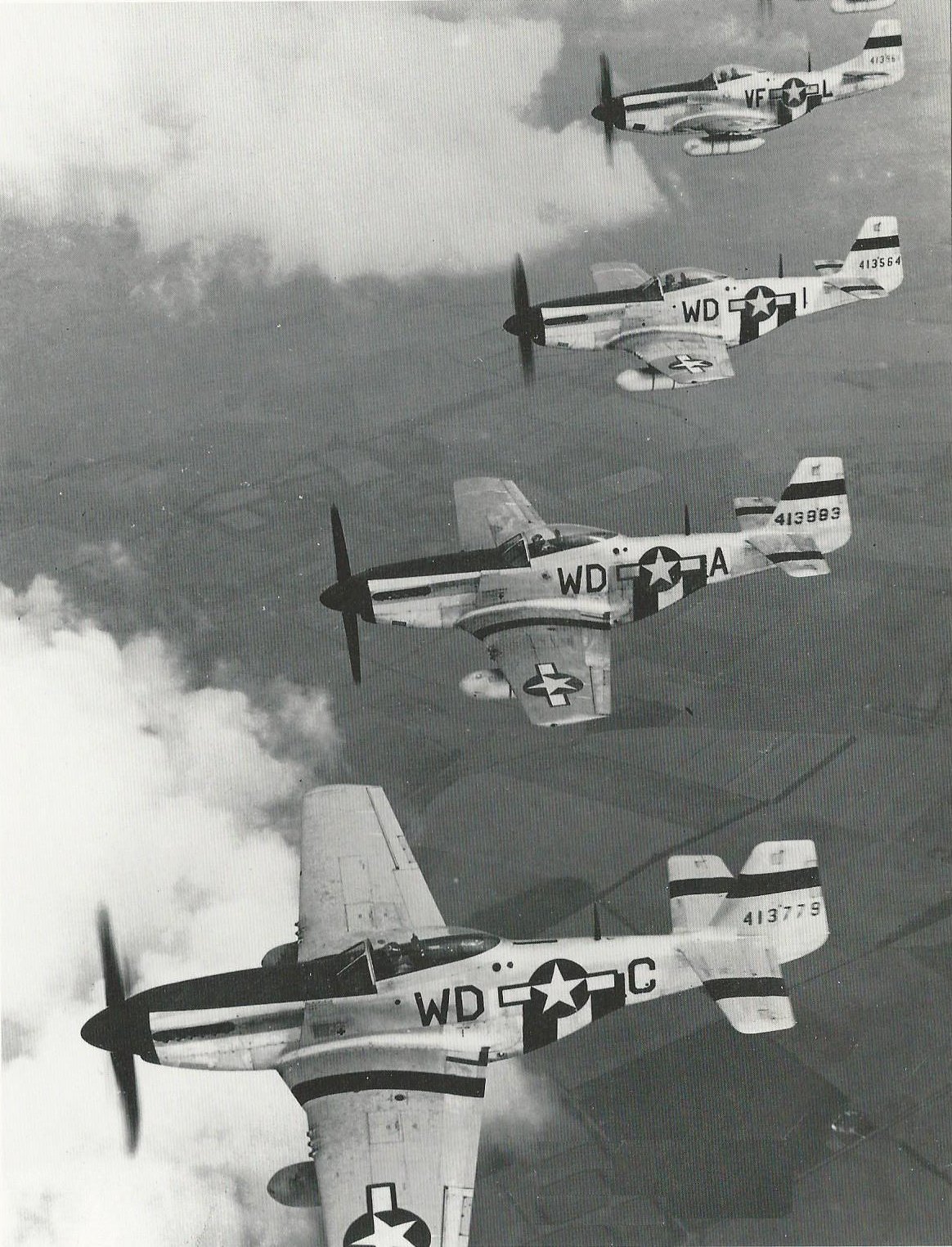 P-51 Mustangs of the 4th Fighter Group over England, September 1944. Image from Little Friends.